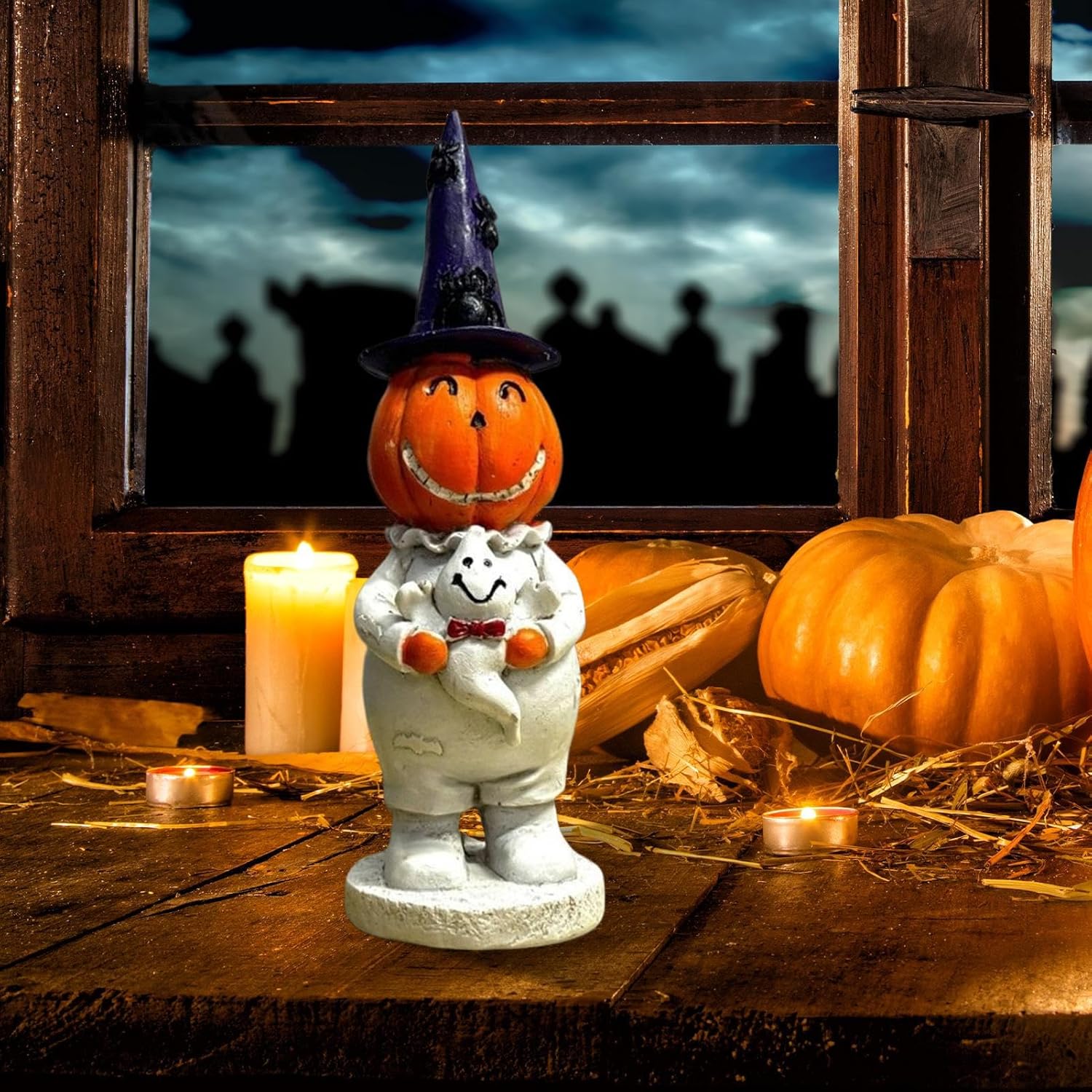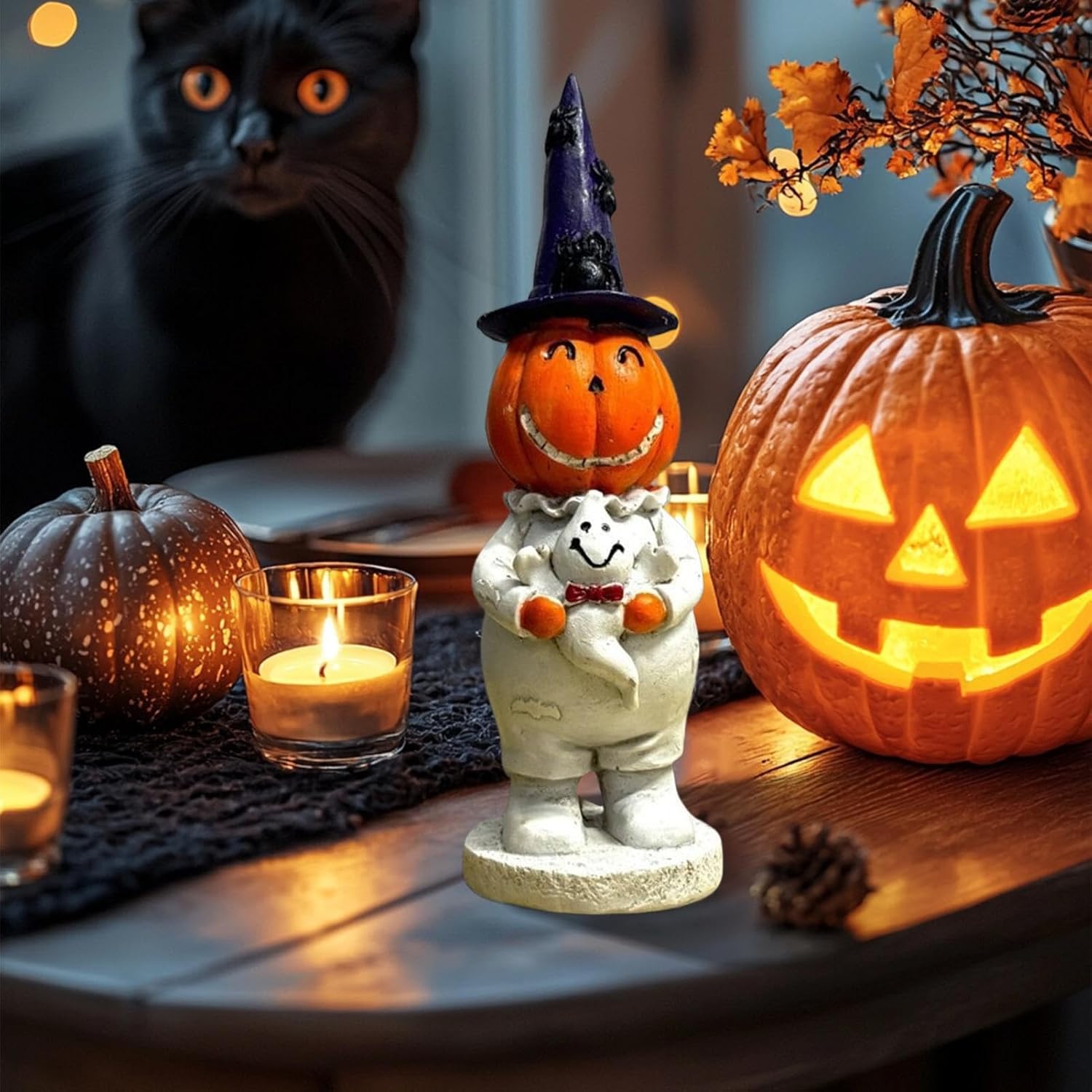 Ambiente festivo creativo: sviluppa un'esperienza di Halloween coinvolgente con motivi fantasma unici e stilizzazione umoristica. Perfetto per la decorazione interna ed esterna per aumentare l'atmosfera festosa attraverso mistico e giocoso. Sorprendente oggetto da collezione: questa figura di zucca con cappello è il regalo perfetto per le vacanze e un'originale attrazione - ideale per i compleanni come decorazione divertente che funge anche da prezioso oggetto da collezione per gli appassionati di Halloween. Celebrazione accattivante: rendi il tuo soggiorno un vero e proprio eye-catcher con questo bizzarro oggetto decorativo. Rende le stanze di Halloween più attraenti, ravviva l'esposizione della camera da letto e fornisce uno stile a tema per fantasiose decorazioni per la tavola delle feste. Posizionamento flessibile: ideale per scrivanie, scaffali e ingressi. Questa statua di zucca offre molteplici opzioni di visualizzazione per un miglioramento immediato dello stile. Aggiunge raffinatezza a qualsiasi concetto di decorazione. Superfici di facile manutenzione: l'elevata resistenza garantisce una lunga durata e superfici lisce e resistenti all'abrasione su questa decorazione di zucca, combinate con dettagli texture precisi per un effetto decorativo duraturo