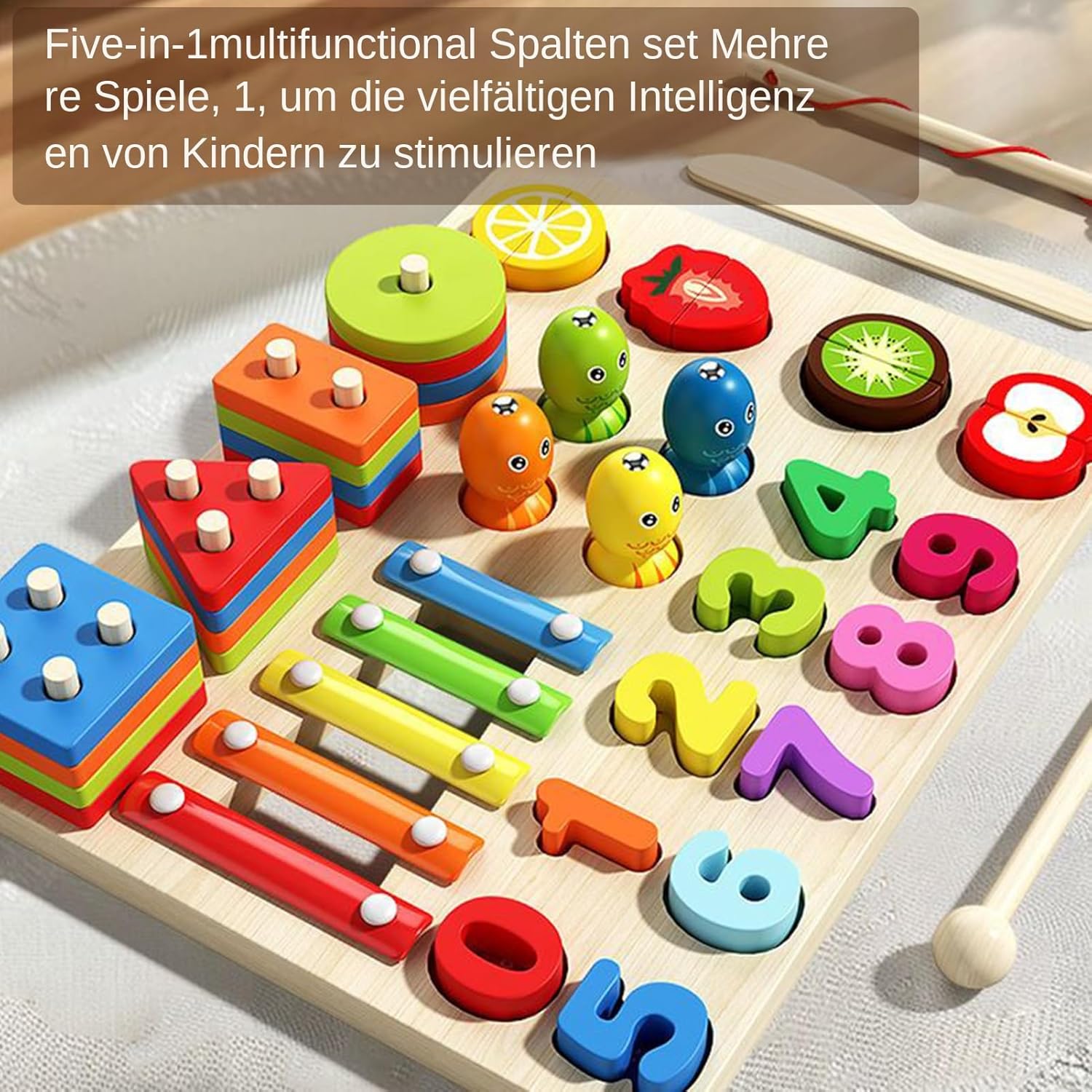 Promozione giocosa: il giocattolo educativo si allena con esercizi di smistamento, riconoscere i numeri e i frutti identificano la capacità di concentrazione, diminuiscono le capacità motorie e stimolano naturalmente la curiosità infantile. Idea regalo: incoraggia il pensiero creativo e le capacità di risoluzione dei problemi dei bambini, permette loro di sperimentare il divertimento di esplorare. Un regalo empatico a sostegno dello sviluppo cognitivo dei giovani spiriti in crescita. Design adatto ai bambini: il gioco basato su moduli sviluppa efficacemente processi di pensiero logico, supporta la promozione cognitiva precoce e allo stesso tempo allena le capacità motorie e l'esplorazione in modo accessibile. Qualità stabile: grazie alla struttura in legno rinforzato resistente alla rottura e levigata per bordi senza sbavature, offre un'esperienza di gioco sicura a lungo per i bambini. Uso a lungo termine: il legno naturale combinato con vernice a base d'acqua nutre la pelle sensibile del bambino e offre ai genitori un'esperienza di gioco senza preoccupazioni grazie ai materiali durevoli