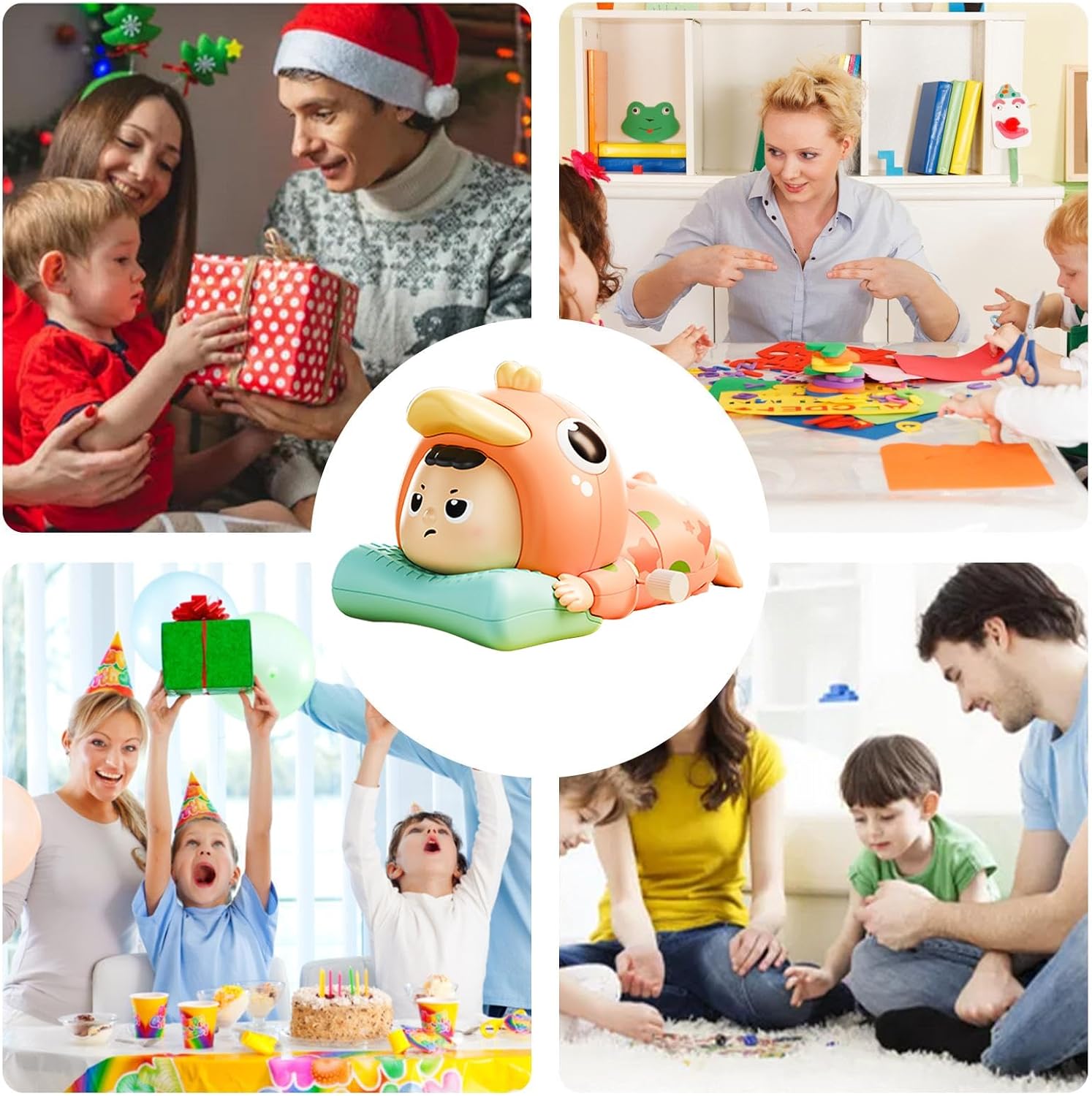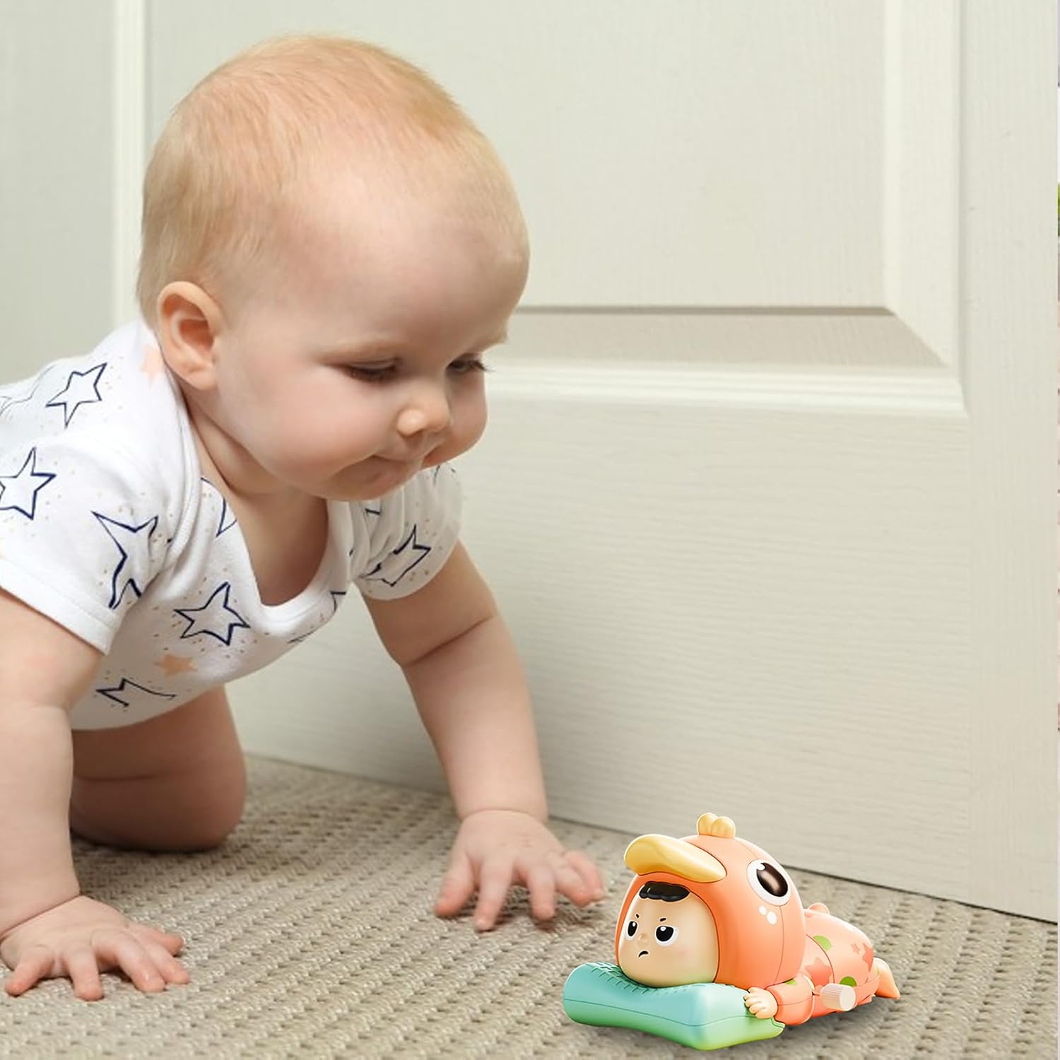 Uso facile e senza sforzo: i giocattoli mobili per bambini sono dotati di un robusto meccanismo di movimento che stimola le capacità di osservazione dei bambini e stimola la pazienza giocosamente. Ideale come giocattolo educativo interattivo per la sala giochi o le aree di attività familiari, dove i bambini possono esplorare e sviluppare abilità importanti come la concentrazione e le capacità motorie attraverso l'uso regolare. Questo giocattolo educativo supporta la naturale curiosità Miglioramento delle capacità motorie: i giocattoli mobili stimolano il potere di osservazione e il movimento dei bambini e offrono un modo giocoso per esercitarsi a gattonare. Promuovono la crescita delle capacità motorie e assicurano intrattenimento continuo mentre i bambini interagiscono con l'oggetto in movimento in modo sicuro. Questa giocosa promozione delle capacità motorie rende ogni lezione di gioco un'esperienza arricchente e supporta lo sviluppo generale. Stimola e promuove la curiosità: questo giocattolo per gattonare stimola la crescita dei bambini motivandoli a gattonare e sostenere lo sviluppo fisico e le capacità motorie. Con design interattivi e movimenti dinamici, offre divertenti esperienze di gioco che catturano l'attenzione dei bambini mentre giocano sul pavimento e risvegliano la loro naturale curiosità. Promuovendo le attività di gattonamento, aiuta a migliorare lo sviluppo in modo giocoso e Divertimento educativo: i giocattoli per gattonare per bambini offrono un modo divertente per praticare la coordinazione occhio-mano e affinare le abilità motorie, incoraggiando la curiosità e l'esplorazione durante il gioco supervisionato. Garantisce un effetto positivo sul viaggio di apprendimento della prima infanzia, supporta lo sviluppo attraverso attività divertenti e favorisce così il piacere di imparare e scoprire nelle situazioni quotidiane. Design accattivante con colori: progettati con un design accattivante, questi giocattoli mobili per bambini utilizzano colori vivaci per stimolare l'attenzione e insegnare il riconoscimento del colore. Il movimento dinamico migliora lo sviluppo visivo e crea un'esperienza di gioco coinvolgente che incoraggia i bambini a gattonare e stuzzica la curiosità.