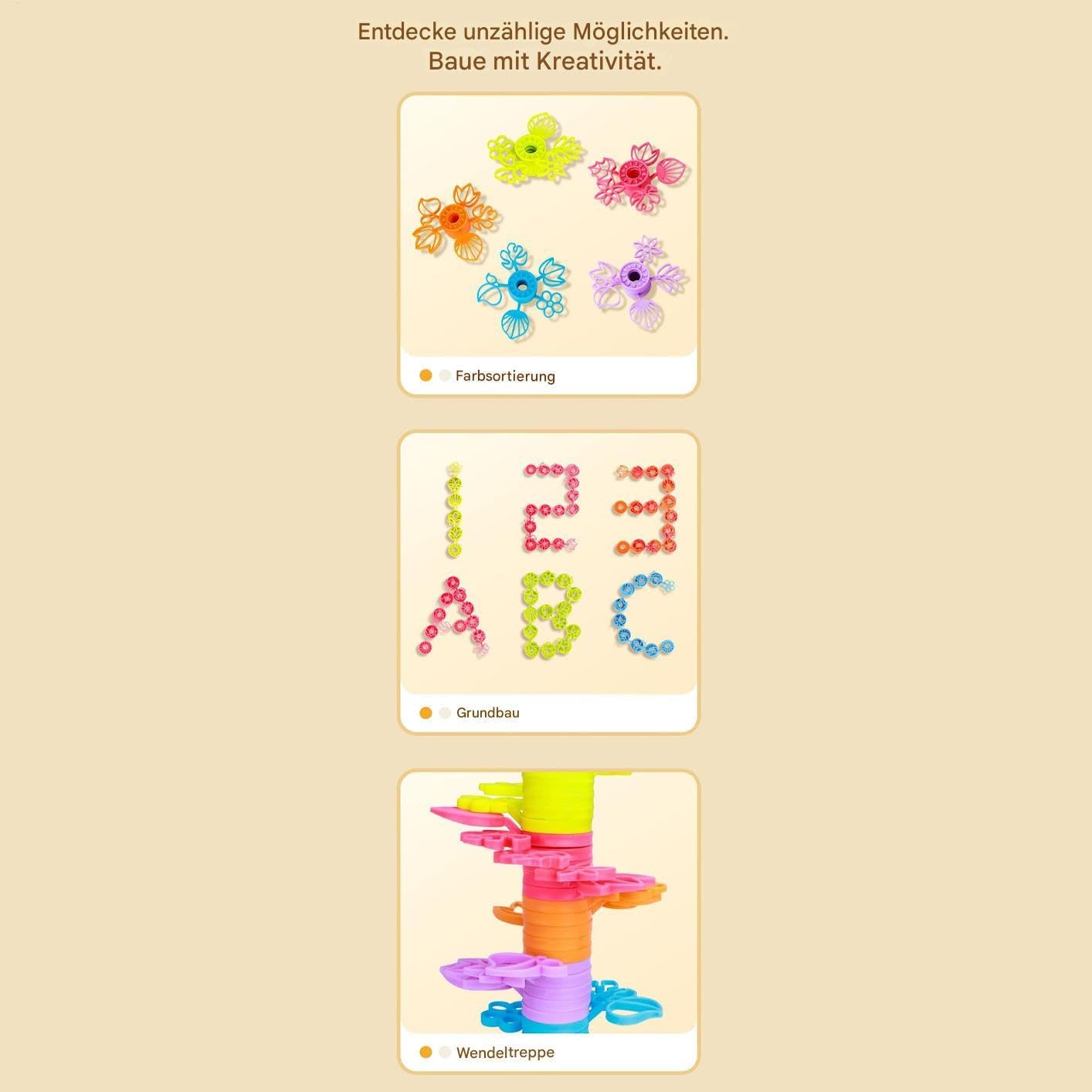 Robusti e stabili: questi giocattoli impilabili per bambini convincono con una superficie liscia e una struttura stabile, favoriscono lo sviluppo attraverso ripetute sfide di impilamento e supportano il gioco educativo Rafforzare il legame familiare: il design del giocattolo impilabile supporta il pensiero critico, stimola soluzioni creative, favorisce lo scambio e il tempo di gioco condiviso in un ambiente amichevole Design affascinante: questi giocattoli impilabili con una varietà di forme e colori consentono numerose possibilità di impilamento che stimolano l'immaginazione e offrono ore di gioco costruttivo all'interno e all'esterno. I bambini promuovono l'immaginazione spaziale e il coordinamento attraverso la manipolazione dinamica delle parti Promuovere la creatività: i blocchi impilabili allenano processi di pensiero logico e capacità di pianificazione, oltre a esercizi di concentrazione e immaginazione spaziale, attività arricchente per i bambini per scoprire la creatività strutturata durante il gioco Facile da trasportare: i giocattoli impilabili vengono forniti con una pratica scatola portaoggetti che facilita l'organizzazione e consente una mobilità senza sforzo, in modo che i bambini possano perseguire liberamente la loro immaginazione, in giardino, in classe o in vacanza