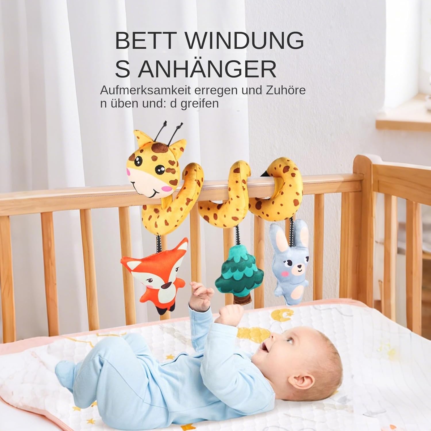 Per occasioni speciali: giocattoli fatti a mano con simbolismo amorevole come regalo significativo. L'attacco flessibile si adatta a diversi modelli di passeggino - ideale per i bambini che giocano all'aperto Apprendimento interattivo: i blocchi gradienti dinamici con elementi contrastanti supportano lo sviluppo del riconoscimento dei colori e l'esplorazione dei modelli attraverso la stimolazione visiva Comfort emotivo attraverso il suono: i delicati toni delle campanelle creano un'acustica rilassante che favorisce il rilassamento emotivo supportando al contempo in modo sicuro lo sviluppo percettivo uditivo dei bambini Riflesso e sviluppo sensoriale: promuove naturalmente il riflesso di presa attraverso elementi sospesi appositamente progettati con elementi stimolanti tattili che migliorano la coordinazione occhio-mano e supportano lo sviluppo sensoriale attraverso effetti di rotazione dinamica. Utilizzo senza stress: il sistema di oscillazione ben studiato impedisce la torsione delle corde di sospensione, garantisce processi di gioco fluidi e supporta lo sviluppo motorio attraverso una libertà di movimento controllata