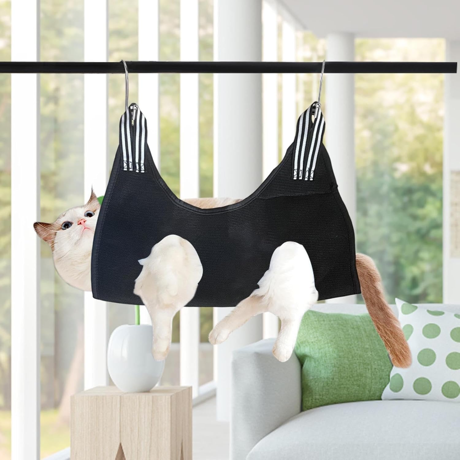 Materiale in morbido cotone poliestere: offri ai tuoi animali domestici uno spazio confortevole e traspirante con le nostre amache per la toelettatura dei cani. Sono realizzati in morbido poliestere-cotone e garantiscono un'esperienza di indossamento rilassata e senza stress. Niente più fastidio per i tuoi amici pelosi! Opzioni di taglia: scegli la taglia ideale per il tuo amico peloso dalla nostra gamma di quattro taglie. È adatto per animali di piccola, media e grande taglia e offre un rifugio confortevole che può essere progettato secondo i vostri desideri. MULTIUSO - Questa amaca per la toelettatura dei cani ha un design versatile per offrire al tuo animale domestico un posto confortevole e funge anche da piattaforma per tagliare gli artigli. Usalo per la tolettatura, il bagno o il massaggio degli animali domestici in vari scenari, tra cui finestre, gabbie, sedie o seggiolini per auto. Design adatto agli animali domestici: questo design leggero e portatile è facile da riporre e trasportare, consentendoti di offrire al tuo animale domestico un rifugio accogliente sempre e ovunque. Ideale per i proprietari di animali domestici che sono costantemente in movimento. Sicurezza superiore: aumenta il sonno del tuo gatto con le nostre amache, realizzate con cura per fornire un rifugio accogliente. La struttura solida e durevole garantisce sicurezza e tranquillità e non si romperà né sbiadirà facilmente.