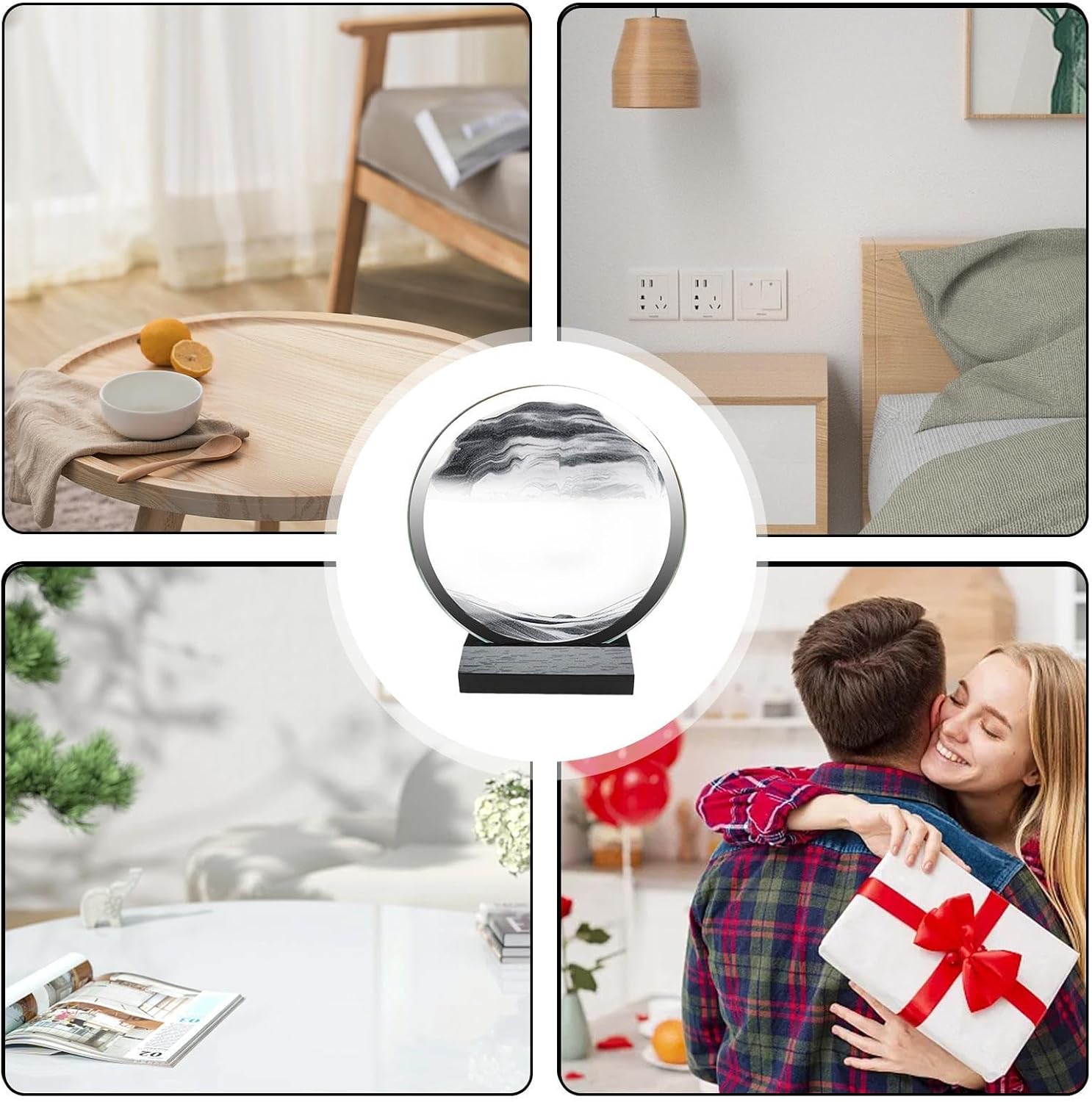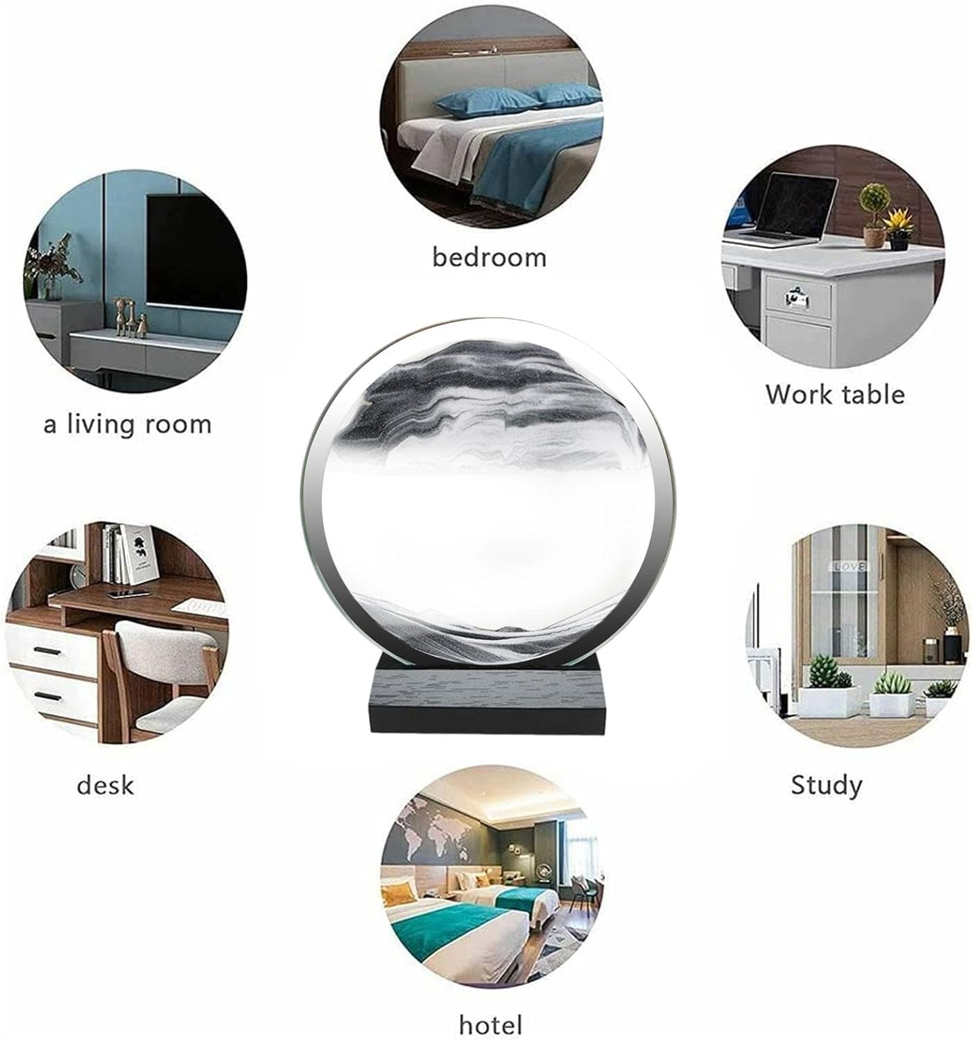 Elegante e durevole: questo dipinto a sabbia mobile presenta una cornice in vetro curata e semplice, bella e generosa e può svolgere efficacemente la funzione di anti-goccia o anti-pressione, oltre a una base in legno forte e durevole. Opera d'arte dinamica: ogni movimento crea un capolavoro unico. Spostando e sistemando strati di sabbia colorata creano modelli e disegni intricati che incoraggiano la creatività e la consapevolezza. Riduzione dello stress: mantieni il tuo umore alto e gli occhi riposati con questo dipinto con sabbia mobile. Perfetto per coloro che trascorrono molte ore davanti allo schermo del computer. Assicura un flusso continuo di pittura a sabbia che cambia forma e colore ad ogni movimento, offrendo un'esperienza unica ed efficiente per ridurre lo stress. Souvenir unico: goditi la bellezza in continua evoluzione dell'arte mobile della sabbia, un pezzo artigianale e interattivo che crea affascinanti paesaggi sabbiosi con diversi colori e forme. Questo dipinto a sabbia è un regalo pratico per ogni occasione e delizierà la tua famiglia, amici e colleghi con il suo effetto calmante e accattivante. Ampia applicazione: trasforma qualsiasi stanza in un ambiente visivamente accattivante grazie all'affascinante pittura a sabbia Moving Sand. Perfetto per hotel, ristoranti, sale da ballo, camere da letto, sale da lavoro e studio. Questa decorazione versatile stupirà tutti con la loro bellezza in continua evoluzione.