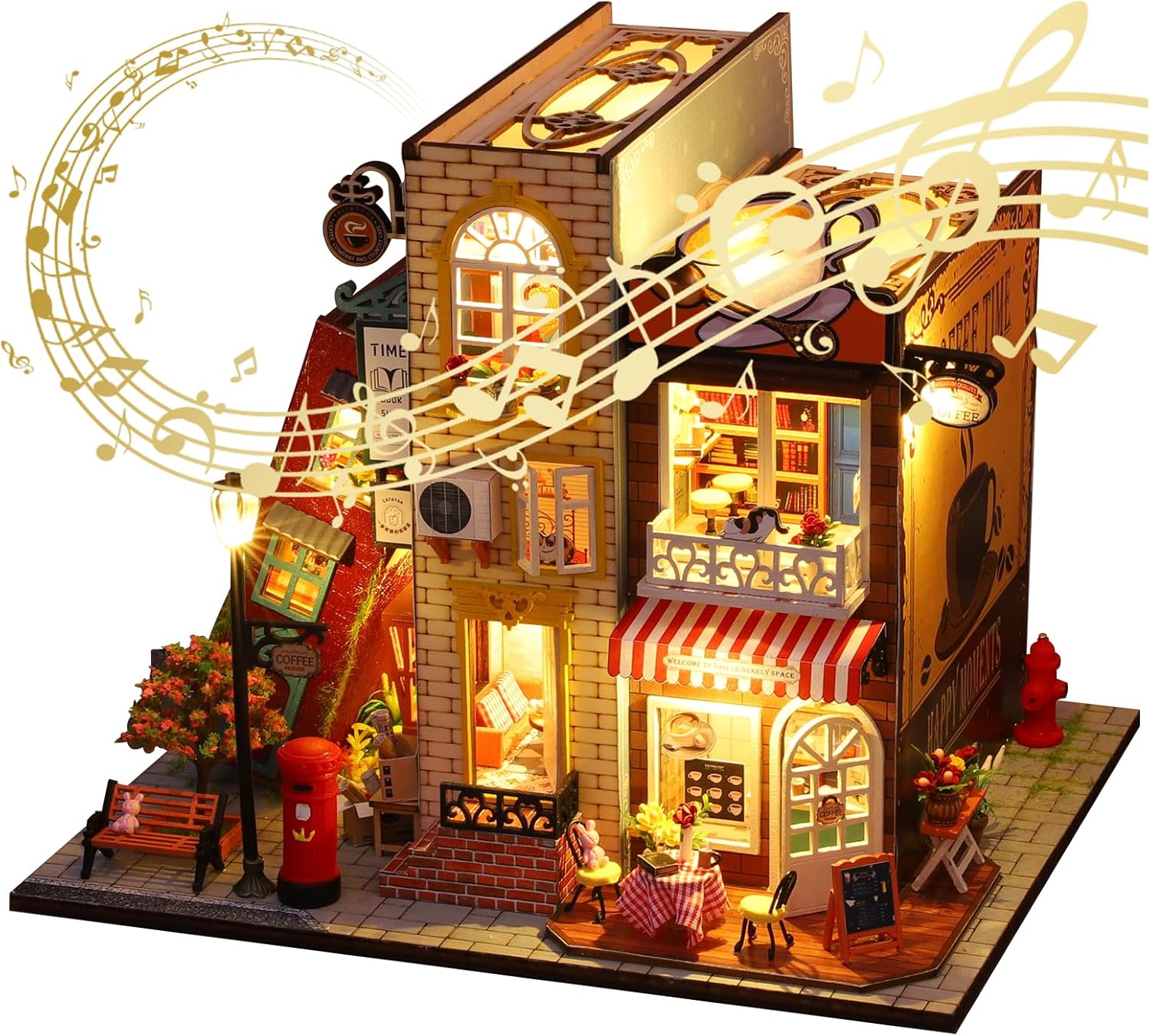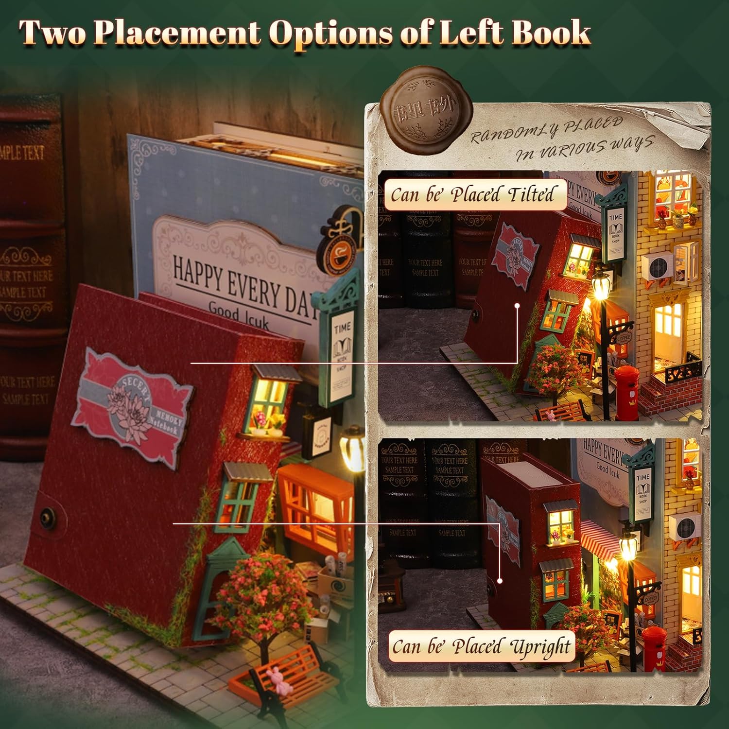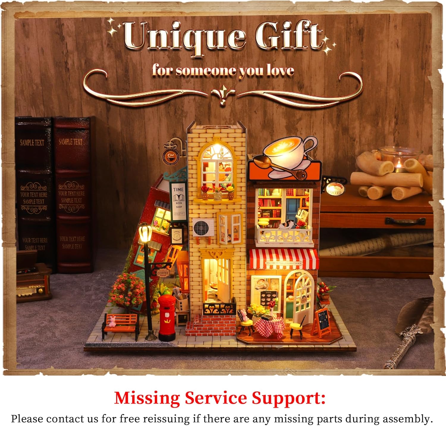 Questo moderno kit modello fai-da-te per caffè offre un divertimento di assemblaggio unico. Presenta un design della pedana cava in stile europeo e tre libri inglesi incorporati per un sofisticato effetto traslucido. Il modello dell'angolo lettura in legno è dotato di una luce notturna sensibile al tocco che fornisce sia illuminazione che decorazione. I dettagli intelligenti includono un supporto per la frutta in miniatura. Realizzato in legno di alta qualità, il prodotto finito è elegante e durevole, rendendolo un regalo premuroso per compleanni, Natale o inaugurazioni della casa. Il set comprende pezzi di legno pretagliati e istruzioni illustrate per un montaggio facile e divertente. Il modello finito misura 25 x 21 x 20,5 cm (scala 1:24). Sono inclusi gli strumenti di assemblaggio di base (sono necessarie batterie AAA). Si consiglia la colla alcolica per fissare il prodotto finito. Una copertura antipolvere è inclusa per la conservazione a lungo termine.