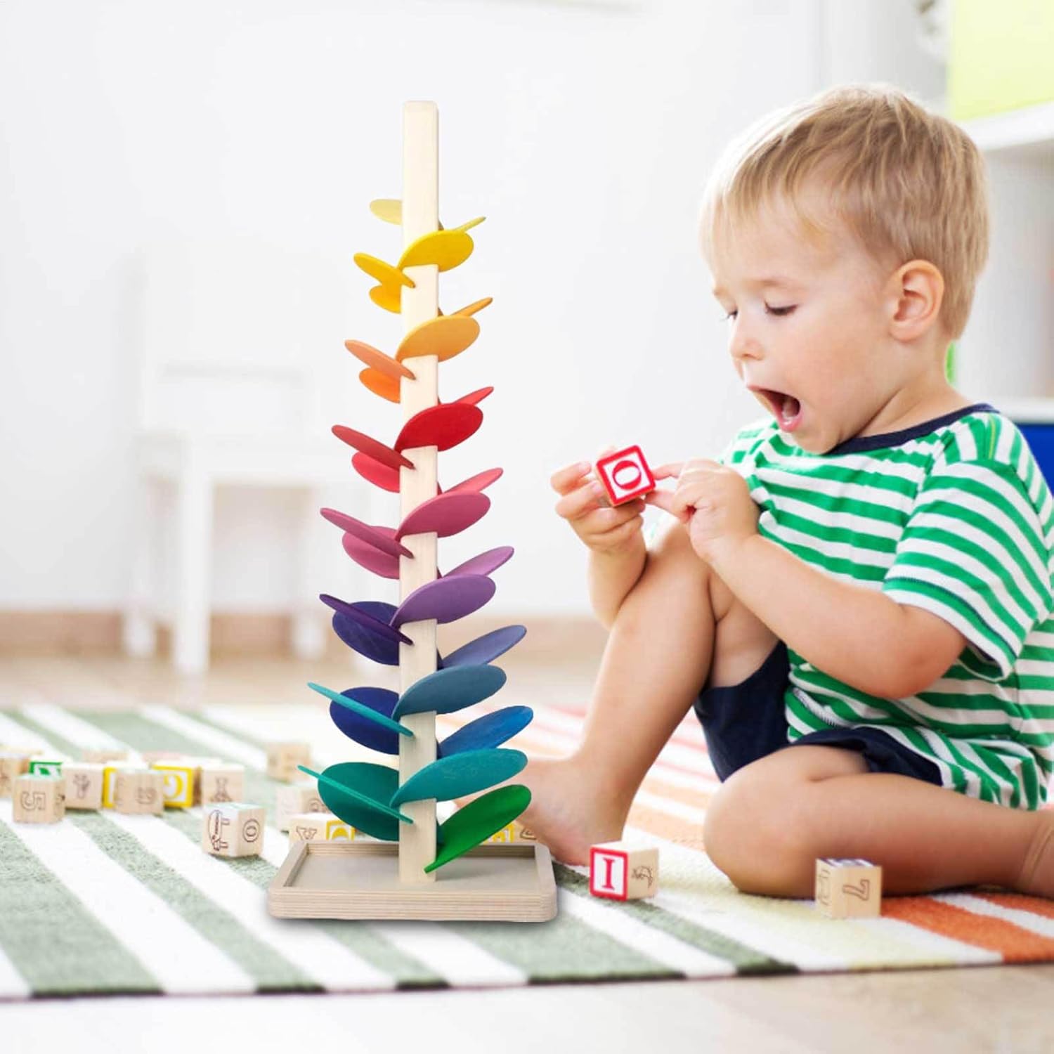 Materiale in legno di alta qualità: realizzato con una rigorosa selezione di materiali in legno liscio, il giocattolo in legno è sicuro, forte e durevole e può essere utilizzato a lungo. 【Miglioramento delle capacità cognitive】 L'albero arcobaleno in legno allena la capacità del bambino di pensare in modo indipendente e ha un impatto importante sullo sviluppo dell'intelligenza e dell'immaginazione del cervello, stimolando l'immaginazione del bambino. Il miglior regalo: Wooden Rainbow ha ponti di comunicazione tra genitori e figli, che sono un regalo sicuro per un bambino in un compleanno o in una vacanza e possono mantenere l'attenzione del vostro bambino per ore. 【Funzionalità】 Il kit Rainbow Musical Tree con sfere di legno insegna al tuo bambino le abilità di presa ed è un ottimo strumento per la coordinazione occhio-mano e migliora le abilità pratiche dei bambini. 【Capacità di riconoscimento dei colori】 Giocattolo in legno arcobaleno, dotato di diversi colori stravaganti per costruire la percezione visiva, migliorare la capacità del bambino di riconoscere il colore e iniziare il viaggio sensoriale di esplorazione del tuo bambino verso la percezione del nuovo mondo.
