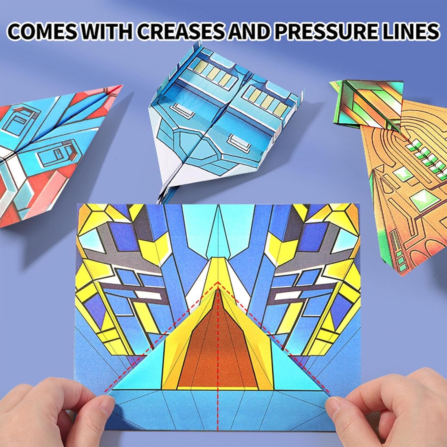 Pratico design pieghevole: questo aereo di carta funge da strumento adatto ai bambini con un metodo di piegatura a tre stadi che promuove il miglioramento del pensiero spaziale e delle capacità motorie. Incoraggia allegre esperienze artigianali a casa, a scuola o durante incontri sociali con gli amici e supporta i legami sociali. Maggiore durata e stabilità: il libro aereo di carta contiene aeroplani di carta robusti realizzati con materiali appositamente resistenti agli strappi, che garantiscono caratteristiche di volo stabili all'interno e all'esterno e resistono a innumerevoli lanci senza problemi. Questo aumenta il divertimento durante le attività ricreative come feste o ambienti di apprendimento e garantisce un intrattenimento duraturo senza usura. Applicazioni versatili: i volantini di carta per bambini ispirano la creatività unendo apprezzamento artistico al gioco casual. Offrono un'entusiasmante modalità di sfida multiplayer che aumenta la concentrazione e fornisce valore educativo durante eventi di vacanza o stagioni casuali. Questo incoraggia i giovani studenti in modo giocoso e coinvolti in attività divertenti. Esperienza interattiva: questo libro aereo di carta consente un impegno creativo con volantini di carta appositamente progettati e diagrammi pieghevoli graduali. Funziona come un accattivante giocattolo educativo post-scuola che rafforza l'interazione genitore-figlio e fornisce divertimento creativo in ambienti giocosi e orientati all'istruzione. Divertimento pieghevole interattivo per tutti: il set di aeroplani di carta offre un divertimento interattivo e funge da progetto cooperativo per l'uso di gruppo adatto alle famiglie. Consente ai partecipanti di progettare aerei modello tematici che possono essere esposti come opere d'arte fatte a mano. Questa attività congiunta arricchisce le esperienze condivise e allo stesso tempo incoraggia gioia e lavoro di squadra nei round sociali. Ideale per incontri sociali, per stimolare la creatività e il geme