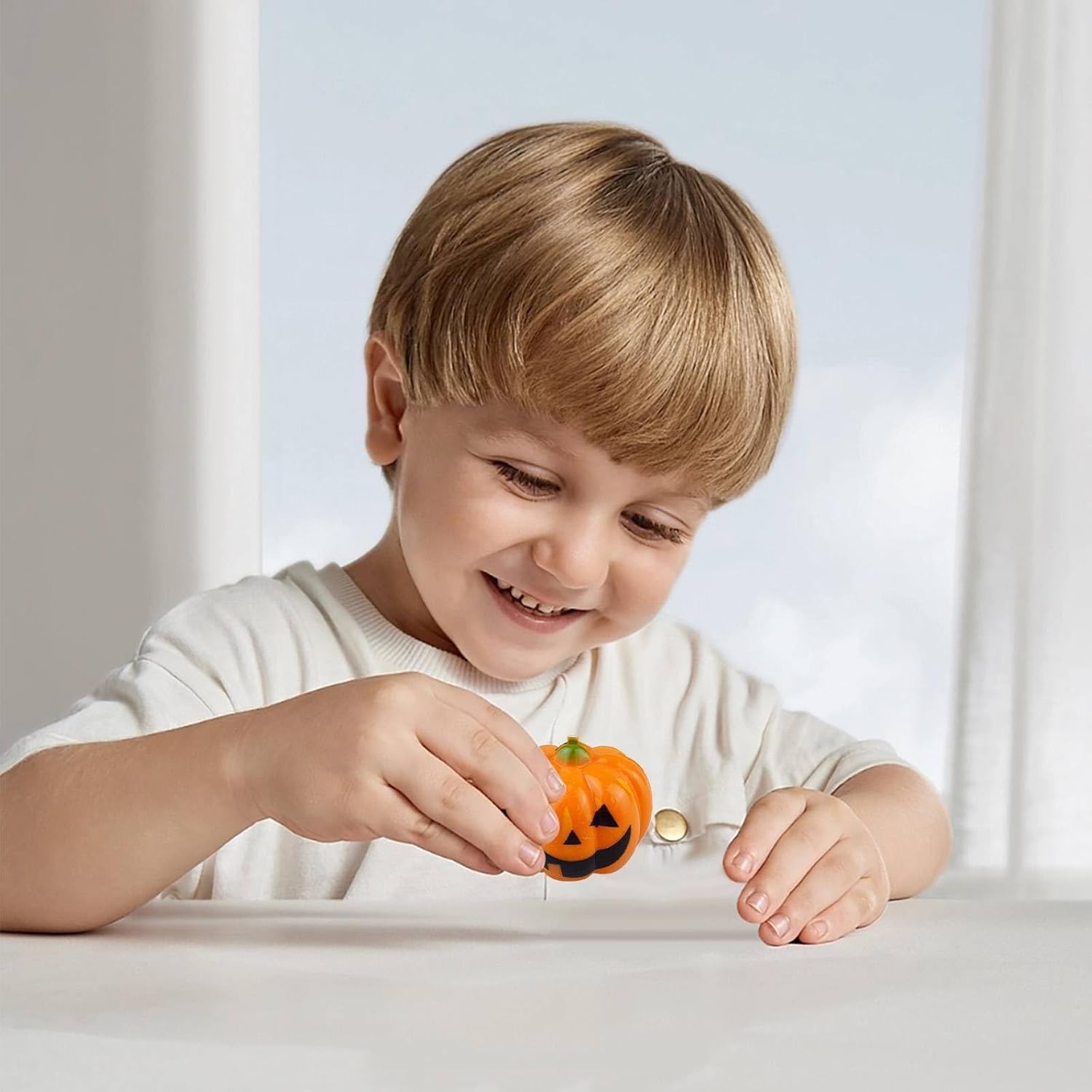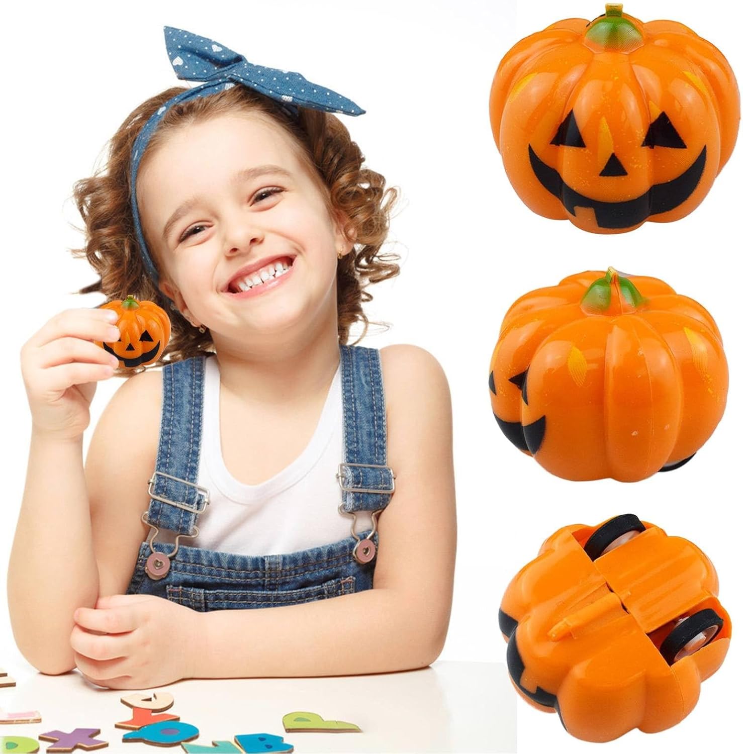 DESIGN: Simpatico design a forma di zucca con una faccia sorridente, realizzata in robusta plastica di colore arancione brillante, perfetta per le decorazioni di Halloween MECCANICA DI GIOCO: Semplice meccanismo di pull-back senza batterie: tira indietro e lascia andare per ore di divertimento DIMENSIONI COMPATTE: Pratiche dimensioni di 3,8 x 3,8 x 3,2 cm e solo 7 grammi di peso, ideale per le mani dei bambini ETÀ CONSIGLIATA: Adatto a bambini dai 3 anni in su, con bordi arrotondati per un gioco sicuro USI VERSATILI: Perfetto come festa di Halloween borsa, giocattolo da viaggio o come complemento decorativo alle decorazioni autunnali