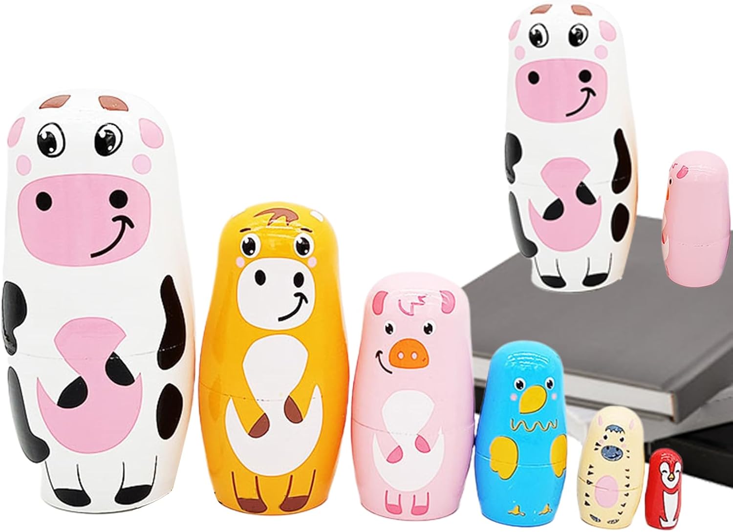 Estetica senza tempo: vivace dipinto a mano su legno massiccio di alto valore, resistente all'abrasione e levigato per un valore estetico duraturo di queste bambole matrioska dal design tradizionale : queste bambole Matrioska sono giocattoli educativi in legno per la promozione creativa all'asilo e un regalo culturale versatile per occasioni festive, lavorate con cura per un divertimento di lunga durata Artigianato dettagliato: ogni bambola Matrioska presenta modelli complessi e temi animali attraverso la magistrale pittura a mano, offre una presenza estetica alle vetrine e delizia i collezionisti con un aspetto senza tempo e una qualità artigianale artistica Pulizia igienica: realizzato in legno resistente all'umidità con struttura stabile per una lunga durata e una conservazione che non sbiadisce; facile manutenzione grazie al panno asciutto per un'attrattiva senza tempo e bassa manutenzione Set da gioco salvaspazio: queste bambole con personaggi di animali affascinanti con dimensioni a gradini offrono divertimento interattivo e salvaspazio. Il set perfettamente impilabile favorisce la creatività e l'organizzazione per bambini e collezionisti.