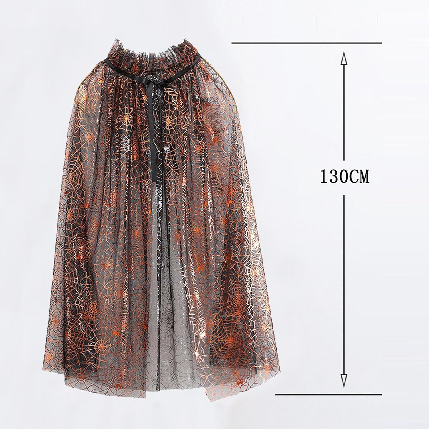 Questo mantello leggero è l'accessorio perfetto per aggiungere un tocco misterioso e cupo a qualsiasi costume di Halloween. Il materiale in tulle trasparente è completamente stampato con un motivo a ragnatela in filigrana su cui si depositano i ragni scintillanti. Grazie alla trama trasparente del tessuto, l'outfit indossato sotto rimane visibile, mentre il mantello crea un ulteriore livello del costume. Gli accenti glitterati riflettono la luce e creano un sottile effetto scintillante che sottolinea l'eleganza spettrale. Sulla scollatura si trova un semplice nastro con cui il mantello può essere chiuso in modo sicuro. Ciò consente un adattamento flessibile alle diverse larghezze del collo e garantisce una vestibilità comoda durante tutto l'evento. Il mantello è un'aggiunta versatile a costumi di tutti i tipi. Che si tratti di una strega buia, elegante vampiro o come sovrana dei ragni, questo mantello completa la trasformazione ed è una buona scelta per feste a tema, carnevale o carnevale. Colori disponibili: nero-argento, nero-arancio Contenuto della confezione: 1 mantello