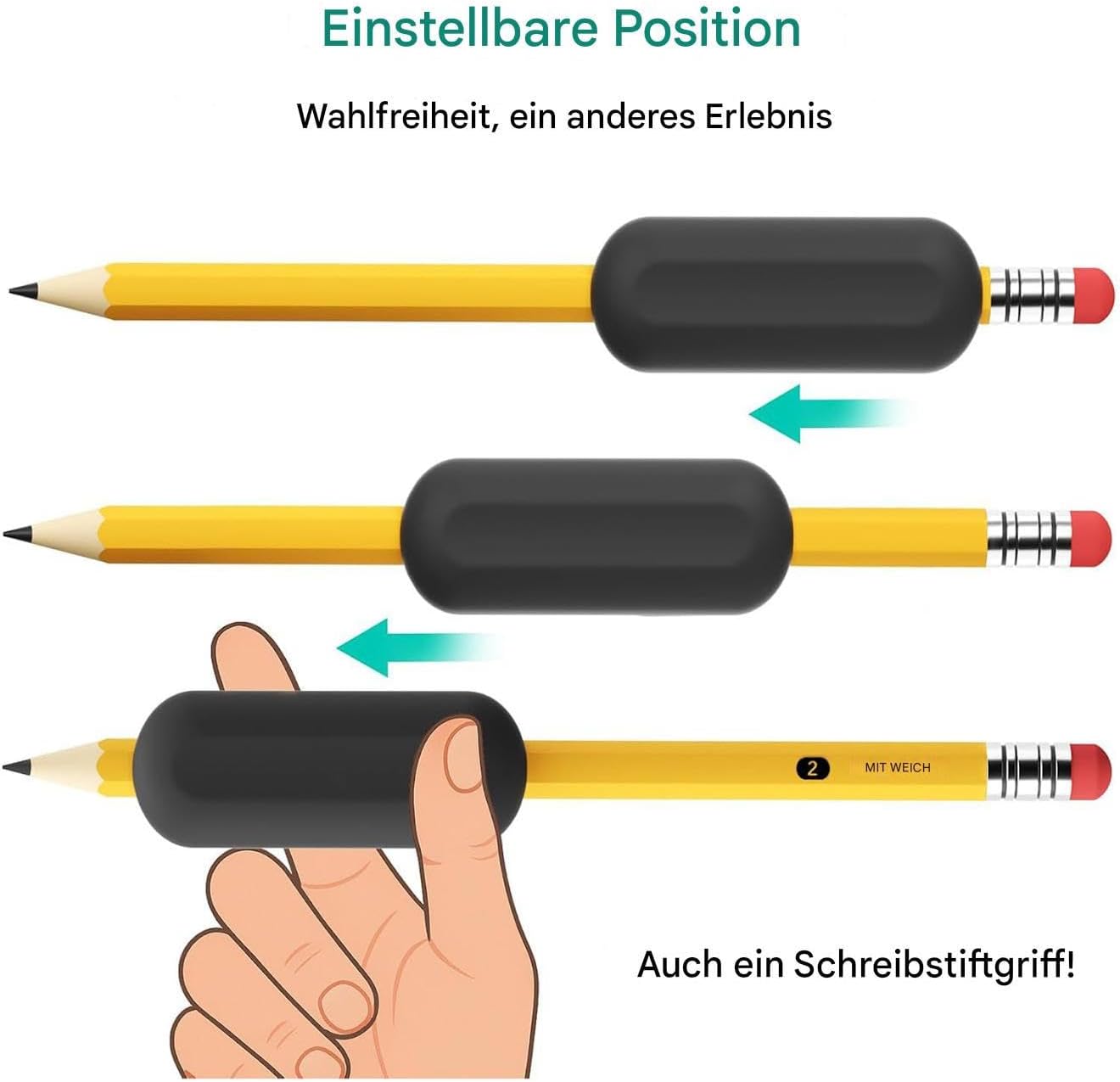 Facile da usare: progettata per la facilità d'uso, la matita ponderata garantisce una rapida regolazione dell'equilibrio come strumento di allenamento affidabile per migliorare continuamente la tecnica di scrittura. Minore affaticamento della mano: lo speciale sistema di bilanciamento consente una scrittura senza sforzo, migliora continuamente le capacità motorie e favorisce una concentrazione di lunga durata Supporto di apprendimento ottimale: migliora la precisione della pittura e del disegno, sviluppa tecniche standardizzate e supporta efficacemente l'allenamento delle abilità focalizzato per istituti scolastici e domestici Ampia compatibilità: la matita ponderata offre una vestibilità regolabile e una presa sicura grazie alla sua apertura triangolare elastica, adatta a diverse penne con un controllo ottimale della scrittura. Silicone resistente: l'impugnatura ergonomica con attrito ottimizzato assicura il controllo della penna. Il silicone elastico garantisce un comfort duraturo e una scrittura indolore anche in caso di uso prolungato.