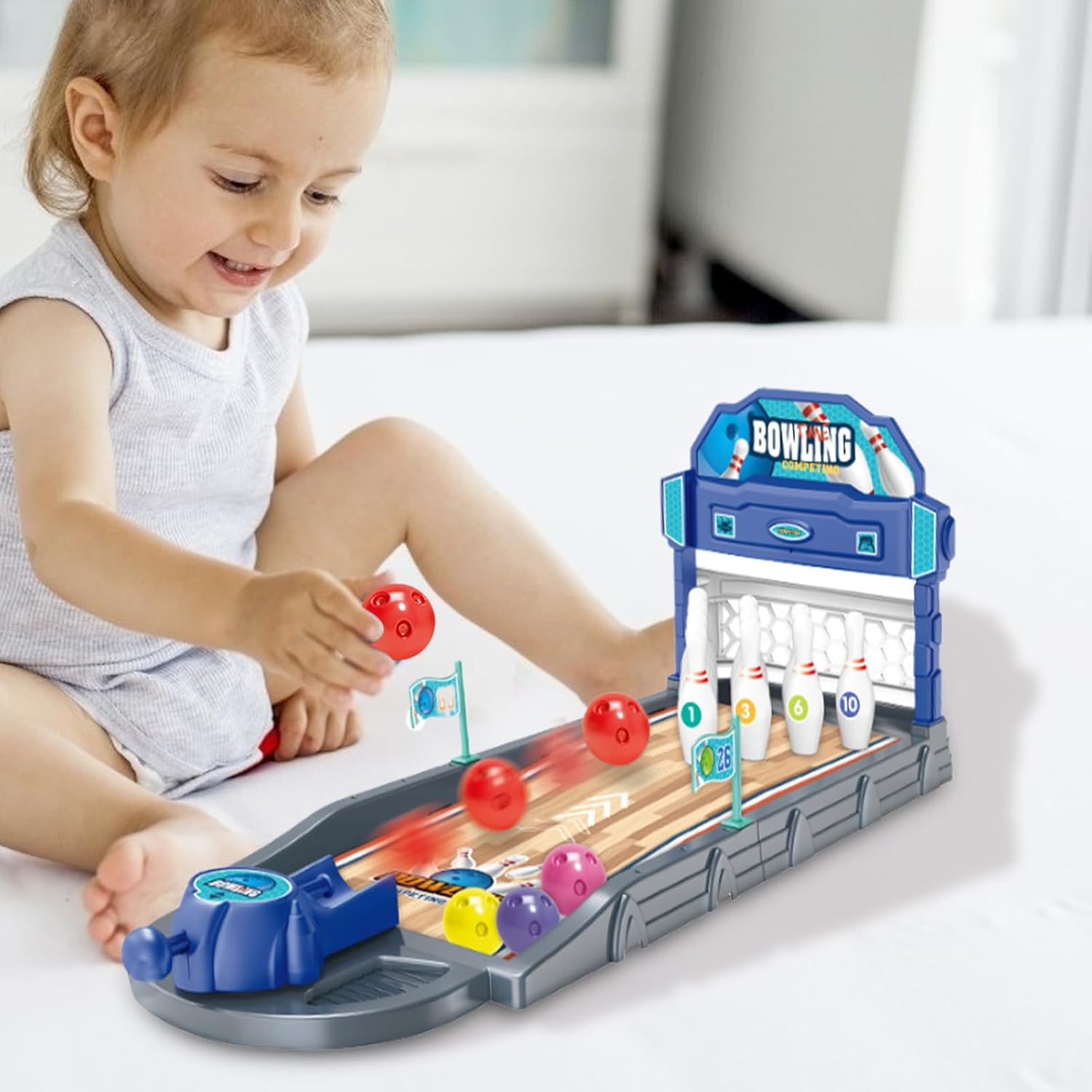 Configurazione realistica del mini bowling: presenta una pista da bowling in legno liscia, 10 birilli in miniatura e un lanciatore di palline a molla che imita una vera pista da bowling, creando un'esperienza sportiva coinvolgente direttamente sul tuo tavolo per tutte le età per divertirsi insieme Meccanismo automatico di espulsione della palla: il sistema di espulsione a molla integrato offre lanci fluidi e ripetibili, aiutando i bambini a sviluppare abilità motorie e precisione aggiungendo un tocco di divertente apprendimento della fisica ad ogni round di gioco al coperto Design robusto e compatto: realizzato con materiali durevoli, legno ecologico, il gioco è leggero ma stabile su qualsiasi piano, rendendolo perfetto per scrivanie, tavolini o piani di lavoro senza occupare troppo spazio durante il divertimento in famiglia o le feste. Ottima opzione di gioco per famiglie al coperto: incoraggia e crea legami tra bambini, adolescenti e adulti; che si tratti di serate di gioco, giornate sulla neve o riunioni festive, questo giocattolo porta risate e azione in qualsiasi soggiorno o sala giochi. Idea regalo unica per vacanze o compleanni: un regalo emozionante e premuroso per Natale, compleanni o occasioni speciali, soprattutto per i bambini che amano i giochi fisici, lontani dallo schermo; ideale per i bambini dai 5 anni in su che amano il gioco interattivo a tema sportivo