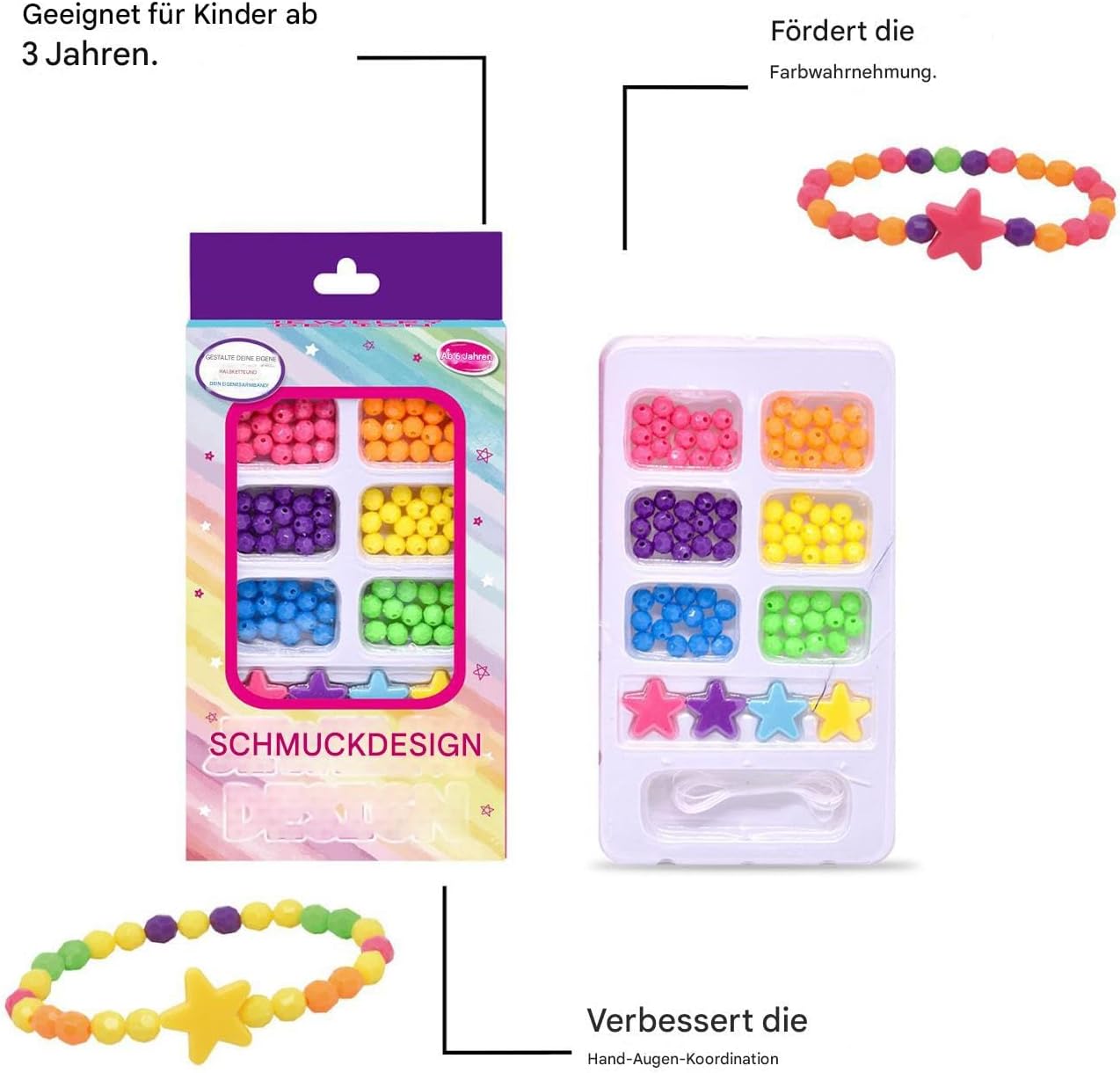 Aspetto adatto ai bambini: design giocoso e colorato con lavorazione resistente – perfetto per progetti di gioielli quotidiani e lavori creativi in gruppo Superficie liscia e stabile: i bordi antigraffio e le superfici uniformemente lucidate garantiscono perline durevoli che si sentono particolarmente sicure per i bambini durante le attività creative e danno ai genitori una sensazione di gioco completamente sicura Design adatto ai principianti: grazie alle istruzioni illustrate dettagliate, il braccialetto può essere utilizzato senza attrezzi speciali. Perfetta possibilità di ingresso per bambini dai 3 anni in su, con esperienze motivazionali di successo in ogni fase del progetto Regalo creativo: suddivisione ben studiata sottolinea il design giocoso delle perline del braccialetto. Ideale come regalo di Natale o fai da te – stimola la creatività e garantisce un divertimento duraturo Promuovere la creatività: il filo elastico del braccialetto supporta le abilità motorie di bambini e adulti attraverso il gioco creativo con perline colorate e un allenamento efficace delle abilità di abbinamento dei colori