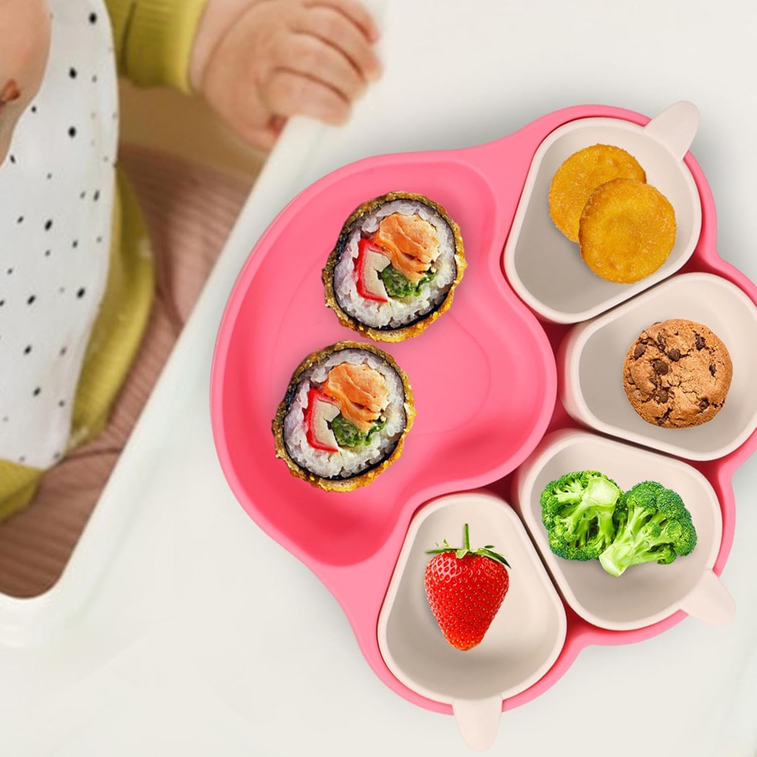 Materiali eccellenti: questa piastra a ventosa è realizzata in materiale di alta qualità ed è realizzata in silicone alimentare, sicuro e resistente alle alte temperature, garantendo un uso duraturo per la tua famiglia. Forma innovativa: la piastra a ventosa con la sua attraente forma ad artiglio di gatto rende questa attività giocosa per i bambini. Il suo design carino aggiunge un tocco divertente al tavolo da pranzo e fa sì che i bambini godano il loro pasto con più entusiasmo, con conseguente abitudini alimentari più sane Ampiamente usato: il nostro piatto a ventosa è ampiamente utilizzato e adatto a varie occasioni come riunioni di famiglia, picnic e persino asili, garantendo un'esperienza culinaria senza problemi, igienica e piacevole per tutti i soggetti coinvolti Stabilità ideale: dotato di una forte ventosa, il design a ventosa grande può essere fissato saldamente al tavolo da pranzo, impedendo ai bambini di far scivolare il piatto o ribaltarsi Design adatto ai bambini: Incoraggia le abitudini alimentari indipendenti e le scelte alimentari più sane di tuo figlio con questo piatto a ventosa progettato per i più piccoli. Con scomparti separati per cibi diversi, aiuta a promuovere abitudini alimentari positive