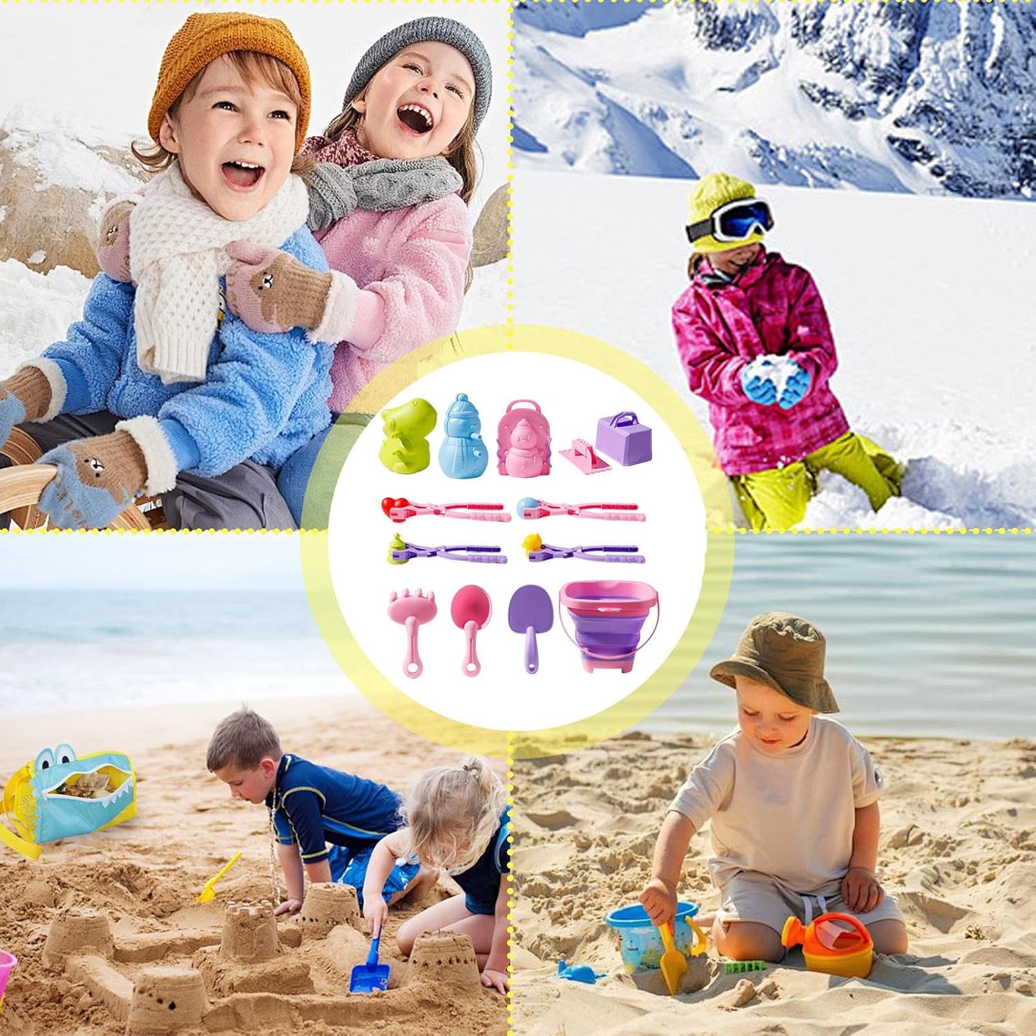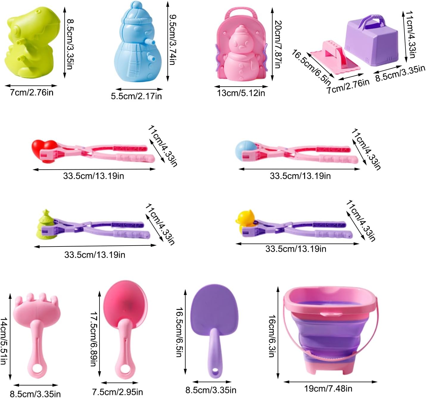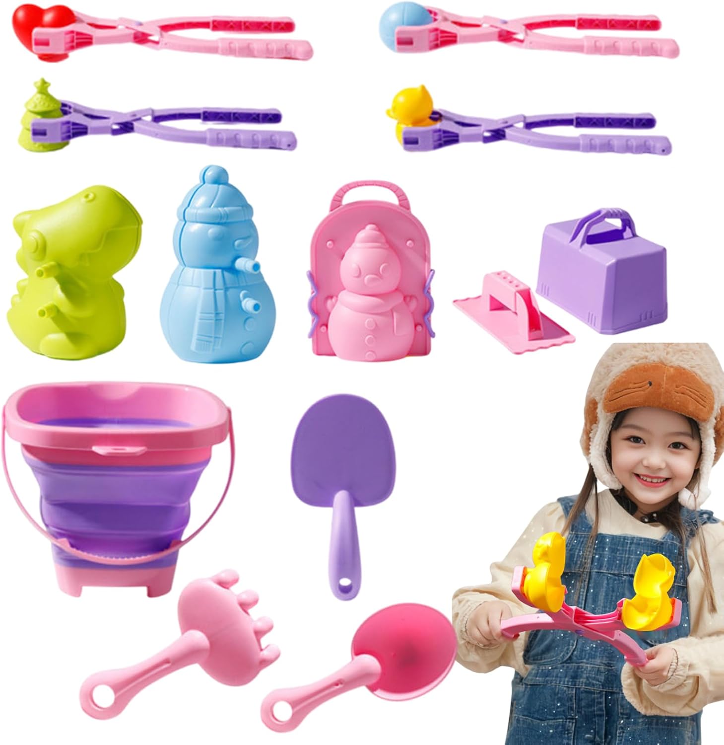 Strumento completo per creare palle di neve: ravviva il tuo tempo di gioco invernale con questo set di strumenti completo per creare palle di neve, composto da 17 strumenti, clip grandi e un secchio. Crea facilmente palle di neve di dimensioni perfette e forma regolare, rendendo il gioco all'aperto più divertente Facile da usare: grande clip per palle di neve per forme perfette e uniformi; Facile da usare, incoraggia la creatività per una divertente esperienza di combattimento a palle di neve che i bambini adorano. Design pratico: grazie al secchio telescopico, questo produttore di palle di neve diventa uno strumento pratico e salvaspazio che offre la massima comodità in qualsiasi avventura sulla neve. Le sue dimensioni regolabili e l'uso multifunzionale lo rendono un accessorio ideale che consente di giocare senza sforzo sulla neve. Materiale a prova di bambino: il nostro produttore di palle di neve garantisce un gioco senza preoccupazioni con i suoi materiali di alta qualità, sicuri per i bambini e rispettosi dell'ambiente. Grazie al design antiscivolo e resistente all'usura, i genitori apprezzano la struttura robusta per un gioco senza preoccupazioni. I bambini si divertiranno e si divertiranno a giocare con questo giocattolo di alta qualità. Opzioni regalo ideali: porta la tua famiglia in un'avventura sulla neve con questo creatore di palle di neve. È la scelta ideale per migliorare le relazioni genitore-figlio, sviluppare abilità pratiche e creare esperienze di legame festive. Regalalo per le vacanze o i compleanni e condividi una gioia indimenticabile arricchendo il tempo di gioco invernale di tuo figlio