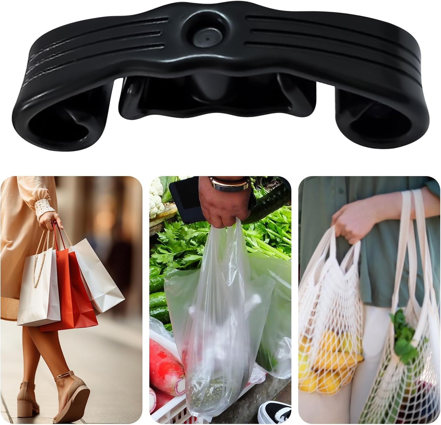 Questa maniglia per borse della spesa è il tuo compagno per lo shopping, i picnic e gli eventi all'aperto, fornendo ogni volta una comoda presa. Supporta il trasporto efficiente di merci pesanti dal parcheggio o dal mercato settimanale e riduce lo sforzo necessario per le commissioni quotidiane e le passeggiate. La maniglia per la spesa è un'aggiunta intelligente a qualsiasi casa. Specifiche: Nome: borsa – Handle. Colore: bianco, nero. Dimensioni del prodotto: circa 13,8 x 9 x 3 cm. Peso: 57 g. Materiale: ABS. Contenuto della confezione: 1 manico per sacchetti alimentari. Nota: Il colore dell'articolo potrebbe essere leggermente diverso da quello mostrato nell'immagine a causa delle differenze di illuminazione e dello schermo. Si prega di considerare un margine di errore di 1-2 cm a causa della misurazione manuale.