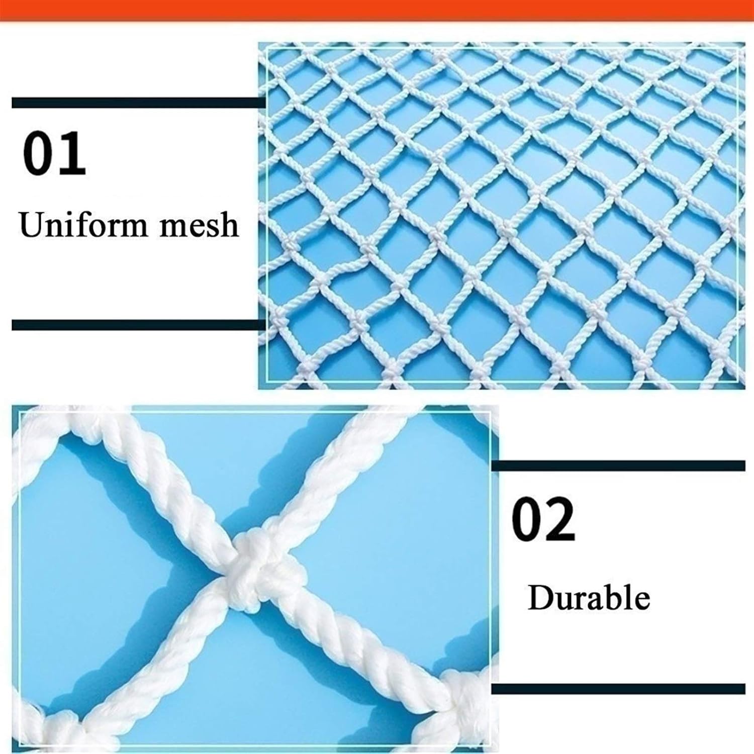 La nostra rete di protezione per bambini di alta qualità realizzata in resistente poliestere-cotone ha una dimensione della maglia di 5 cm e un diametro della corda di 5 mm. Il design intrecciato a mano garantisce sicurezza durante il gioco. Offriamo diverse dimensioni e opzioni di personalizzazione per soddisfare le vostre esigenze. Questa rete versatile è ideale per creare un'area giochi sicura ed è perfetta per l'uso domestico ed esterno. RETE DI SICUREZZA PROFESSIONALE: Prodotta utilizzando macchinari all'avanguardia, la nostra rete di sicurezza presenta un design durevole intrecciato da tre robusti fili di corda per una maggiore resistenza. I nodi rinforzati garantiscono un'elevata capacità di carico, mentre la rete uniforme e la corda laterale offrono una protezione ottimale. Questa rete è ideale per varie applicazioni e soddisfa elevati standard di sicurezza per prestazioni affidabili. Durevole e affidabile: la nostra corda nodosa fornisce una forza costante con una forte forza di trazione. Progettato per l'antietà e la protezione solare, è antiscivolo e resistente all'usura. Leggero e morbido, è facile da riporre e piegare quando non viene utilizzato. Perfetto per varie attività all'aperto e ideale per il campeggio, l'escursionismo e altro ancora. 4. Sicurezza pratica: una rete di sicurezza per la ringhiera delle scale che puoi attaccare al balcone o alla ringhiera delle scale. Passare le cinghie attraverso i fori previsti nella rete e avvolgerle attorno al corrimano o attraverso i robusti fori della rete direttamente attorno alla ringhiera. Si prega di non personalizzare la rete di sicurezza. 5. Durevole: annodato e solido, forza uniforme, forte forza di trazione, antietà e protezione solare, antiscivolo, durevole e resistente all'usura, morbido e leggero, facile da riporre e può essere piegato quando non in uso.