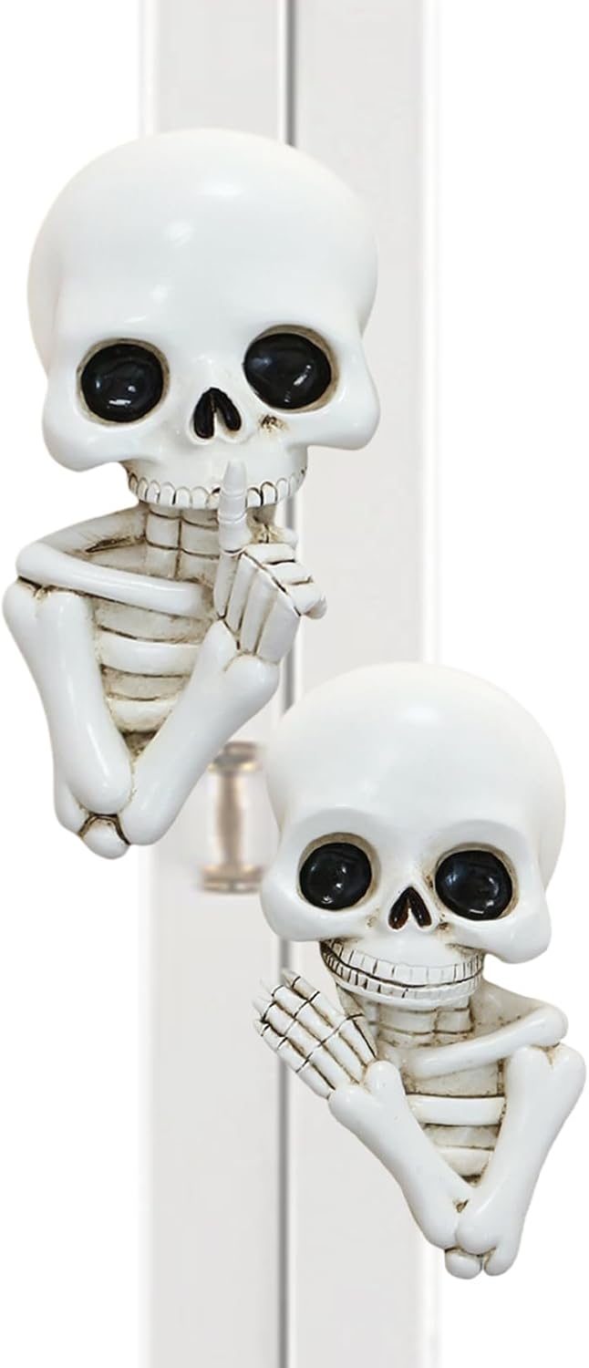 Installazione senza danni: le soluzioni adesive senza residui e a base di schiuma proteggono le superfici e allo stesso tempo sono versatili. Effetto duraturo: crea tutto l'anno un'atmosfera suggestiva dal tocco gotico. Ideale per vetrine e scaffali, garantisce una presenza decorativa sostenibile in tutte le stagioni grazie al design classico. Longevità: grazie al materiale in resina ad alta resistenza e alla lavorazione resistente allo sbiadimento, la decorazione in resina del teschio colpisce per la sua durata a lungo termine e mantiene la sua forma. Posizionamento flessibile: decorazione murale compatta con teschio per un look versatile. Ideale per decorazioni multiple in stanze diverse con opzioni di sospensione flessibili che sottolineano senza sforzo diversi stili di arredamento. Design accattivante: affascinante decorazione murale con teschio con dettagli artistici di scheletri e una posa divertente e inquietante. Imposta volutamente Gothic come un elemento centrale di attrazione - ideale per il soggiorno, il corridoio o l'home office.