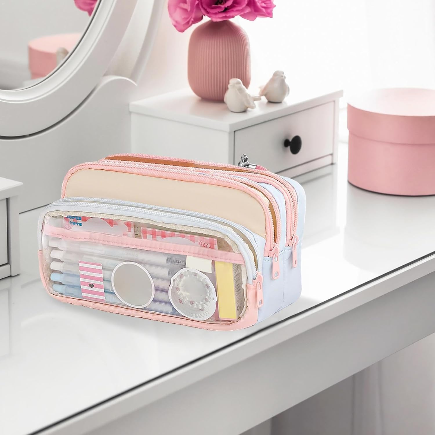 Suddivisione degli scomparti: il design a tre strati supporta un utilizzo versatile su scrivanie, in cassetti o come custodia da viaggio, offre una migliore organizzazione quotidiana e una migliore trasportabilità Regalo emozionante: condividi sentimenti speciali con questo astuccio per penne che trasmette amore e cura alla famiglia, agli amici o ai partner durante momenti speciali come compleanni, feste, Natale o cambi di anno. Garantisce un'esperienza indimenticabile. Struttura a scomparti intelligente: la suddivisione a strati con tre scomparti in questo grande astuccio consente di riporre sistematicamente penne, gomme e foglietti per appunti, elimina il disordine e migliora l'accessibilità con l'uso quotidiano Pulizia pratica: tela resistente alle macchie combinata con rivestimento interno in PVC liscio per una facile manutenzione. Rinfresca l'astuccio strofinando con un panno umido e mantieni l'ordine nelle esigenze di scrittura. Funzione anti-bloccaggio: le cerniere in metallo appositamente rinforzate si aprono e si chiudono sempre senza inceppamenti, ideali per afferrare rapidamente gli strumenti di scrittura, mantenendo al contempo tutti i contenuti in modo sicuro.