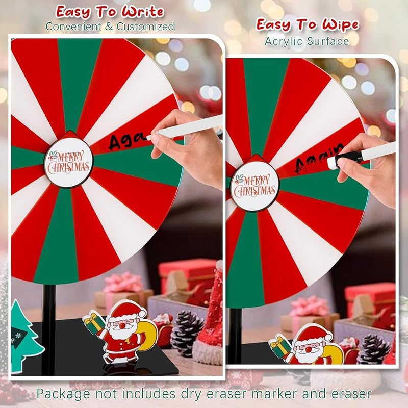Portabilità rimovibile: con il suo design di trasporto rimovibile, questa ruota dei prezzi natalizi garantisce una facile mobilità e conservazione, pur mantenendo una base stabile e una struttura di stabilità migliorata, adatta per feste di famiglia, uso in classe e varie compatibilità di eventi Strumento versatile per eventi: grazie alla tecnologia di finitura cancellabile a secco, la ruota del prezzo garantisce una pulizia rapida con un panno e consente configurazioni di slot personalizzabili, consentendo cicli di riutilizzo multipli e promuovendo un potenziale creativo illimitato Intrattenimento dinamico natalizio: include meccaniche di gioco di avvio rapido e un allegro tema natalizio, migliorato da un design a 16 slot rotanti che fornisce imprevedibili vincite e compiti Migliorare le celebrazioni delle feste: aumenta il divertimento con una vivace ruota della fortuna che aggiunge eccitazione e arricchisce le celebrazioni, rendendola ideale sia per feste che per scopi promozionali Design di montaggio modernizzato: il Christmas Prize Wheel dispone di un processo di montaggio senza attrezzi, eliminando la necessità di lunghe procedure. Essendo realizzato in acrilico resistente, la pellicola protettiva deve essere rimossa prima dell'uso per garantire un'esperienza fluida e piacevole durante le feste