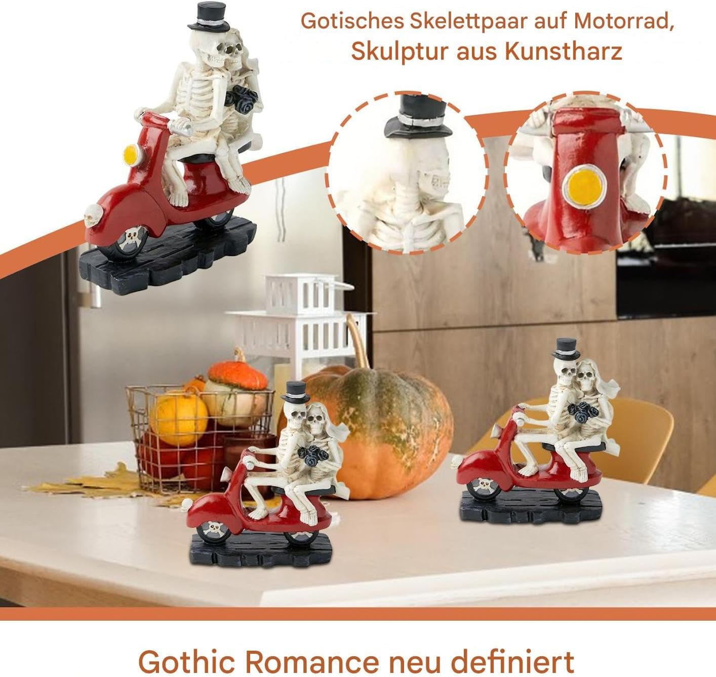 Lucidato a mano e precisione: statua in resina lucidata a mano con una sensazione estremamente liscia. Resistente agli agenti climatici e alla deformazione, mantenendo a lungo termine la luminosità inquietante Atmosfera istantanea di Halloween: design sofisticato per qualsiasi stanza: questa statua di coppia scheletro è un must per le feste a tema. Perfetto come decorazione per la stanza o la scrivania, diffonde immediatamente un'atmosfera spaventosa di Halloween e crea un'atmosfera inquietante durante le feste fantasma. Idea regalo originale: questa coppia di scheletro è il regalo perfetto per Halloween o San Valentino e regalerà una sorpresa emozionante e un doppio effetto brivido. Crea momenti indimenticabili senza sforzo ed è una scelta regalo unica per le occasioni speciali. Dichiarazione di individualità: questa statua di scheletro fatta a mano emana un'atmosfera romantica e spaventosa, ideale per Halloween. Combina il romanticismo gotico reinterpretato di recente con il motivo avventuroso degli scheletri sulla moto. Così si crea un pezzo indimenticabile per un'espressione individuale audace. e resistente: con struttura solida e struttura rinforzata in materiali resistenti all'abrasione, questa coppia di statue garantisce una forte resistenza del materiale, rimane infrangibile e sicura durante la manipolazione
