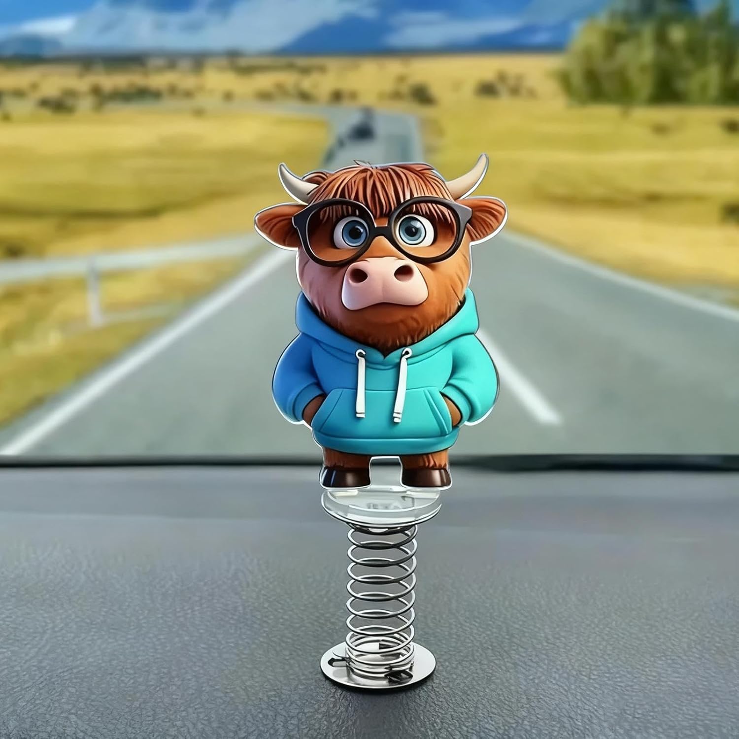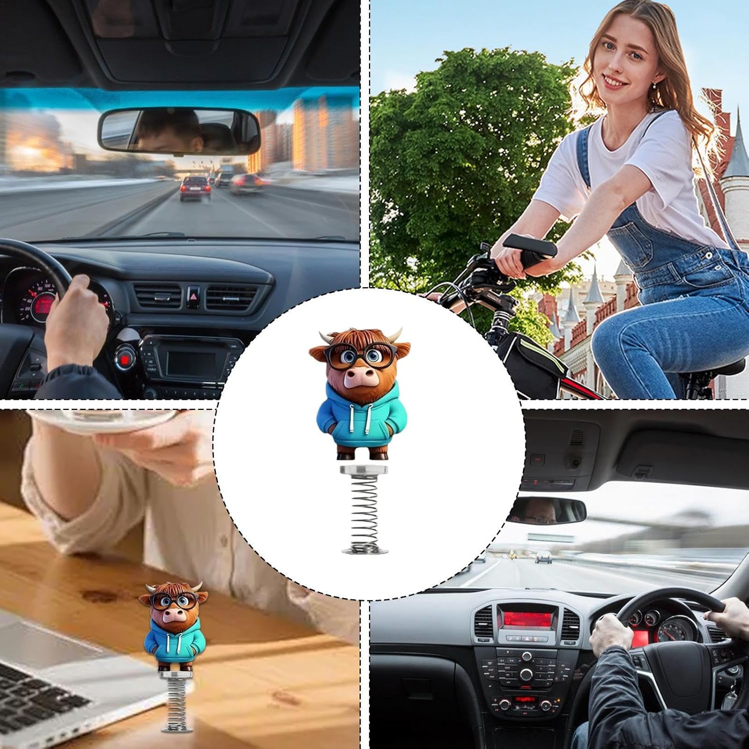 Rappresentazione rivitalizzante per tutte le occasioni: con un meccanismo unico a base di piume, i personaggi danzanti mostrano un movimento di danza divertente e coinvolgente che garantisce vivacità visiva in diversi scenari come viaggi accidentati in auto o scrivanie. Grazie alla loro leggera struttura in acrilico, rimangono portatili e versatili, per servire come elemento decorativo in occasioni sociali o nella vita di tutti i giorni e diffondono sempre energia positiva. Bizzarro mucca oscillante: questa statuetta di cartoni animati di mucca danzante offre uno speciale ritmo eccentrico e movimenti continui di oscillazione. Dona relax e gioia e aiuta a ridurre l'affaticamento durante i viaggi lunghi, rendendoli ideali per le pause in viaggio. I movimenti ritmici favoriscono il rilassamento e garantiscono momenti gioiosi per tutti i viaggiatori. Ampiamente usato: questi personaggi danzanti presentano un design piatto sottile che si adatta perfettamente ai cruscotti e alle griglie di ventilazione dell'auto. Equilibrano l'estetica e la sicurezza e migliorano senza sforzo l'atmosfera dei moderni spazi minimalisti. Il design piatto garantisce un posizionamento stabile e contribuisce all'attrattiva visiva, migliorando la decorazione di veicoli in stile minimalista. I personaggi sono versatili Installazione rapida e affidabile: le statuette del cruscotto sono caratterizzate da un processo di montaggio e rimozione senza attrezzi in 3 secondi con adesivi autoadesivi che non rovinano i materiali. Ciò sfrutta gli utenti che necessitano di un montaggio veloce ma sicuro per prestazioni costanti in ambienti in rapida evoluzione o in mutevole. Materiale ad alta trasparenza: la figura oscillante per finestre è realizzata in acrilico altamente trasparente, che garantisce una visione cristallina e un'eccellente visibilità dei modelli resistenti allo sbiadimento. Questa caratteristica esalta il fascino decorativo in qualsiasi interno o esterno, poiché la figura manterrà il suo aspetto impeccabile e fresco per lungo tempo senza distorsioni o perdita di colore. Ideale per il posizionamento permanente su davanzali, scrivanie o scaffali, dove si cambia