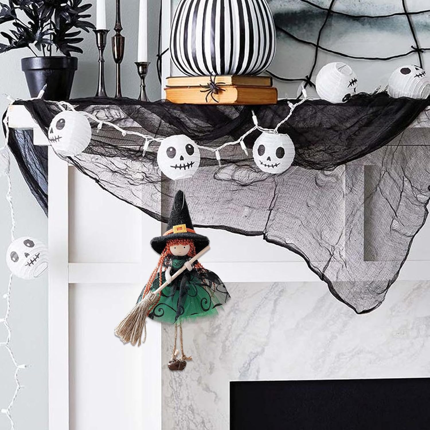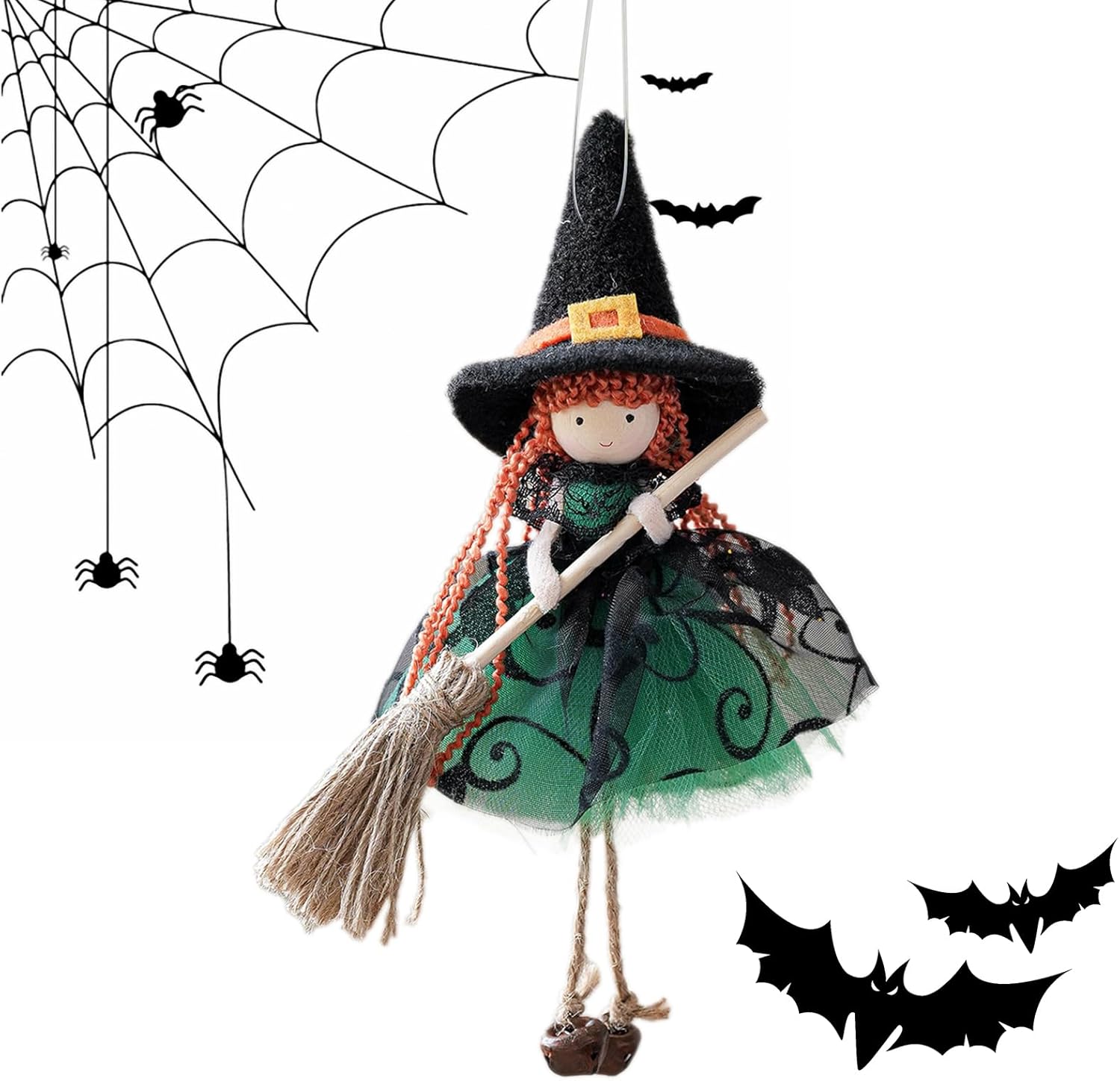 Soluzione decorativa senza tempo: Strega da cucina perfettamente coordinata con le decorazioni festive poiché crea scene di Halloween multistrato con una larghezza di 30 cm per un effetto spaziale impressionante in un design rustico senza tempo realizzato con materiali ecologici. Dimensionalmente stabile: lo speciale materiale in seta conferisce delicatezza senza pelucchi. Resiste alla deformazione e alla perdita di colore per una bellezza duratura con un eccellente effetto drappeggio durante la decorazione. Applicazione versatile: può essere posizionato in modo flessibile su porte, finestre o rami con un pratico gancio. Aumenta la varietà delle decorazioni con un utilizzo ottimale dello spazio grazie alle opzioni di sospensione variabili per un design creativo della stanza. Incantevole decorazione: con ali d'angelo, campanelli e scope. Elementi in tulle e design intelligente creano un'atmosfera vacanziera dalla presenza enigmatica. Comodamente portatile: il materiale pieghevole flessibile riduce al minimo lo spazio di archiviazione, mantiene la forma tridimensionale e consente un trasporto senza sforzo per scopi di viaggio o di decorazione.