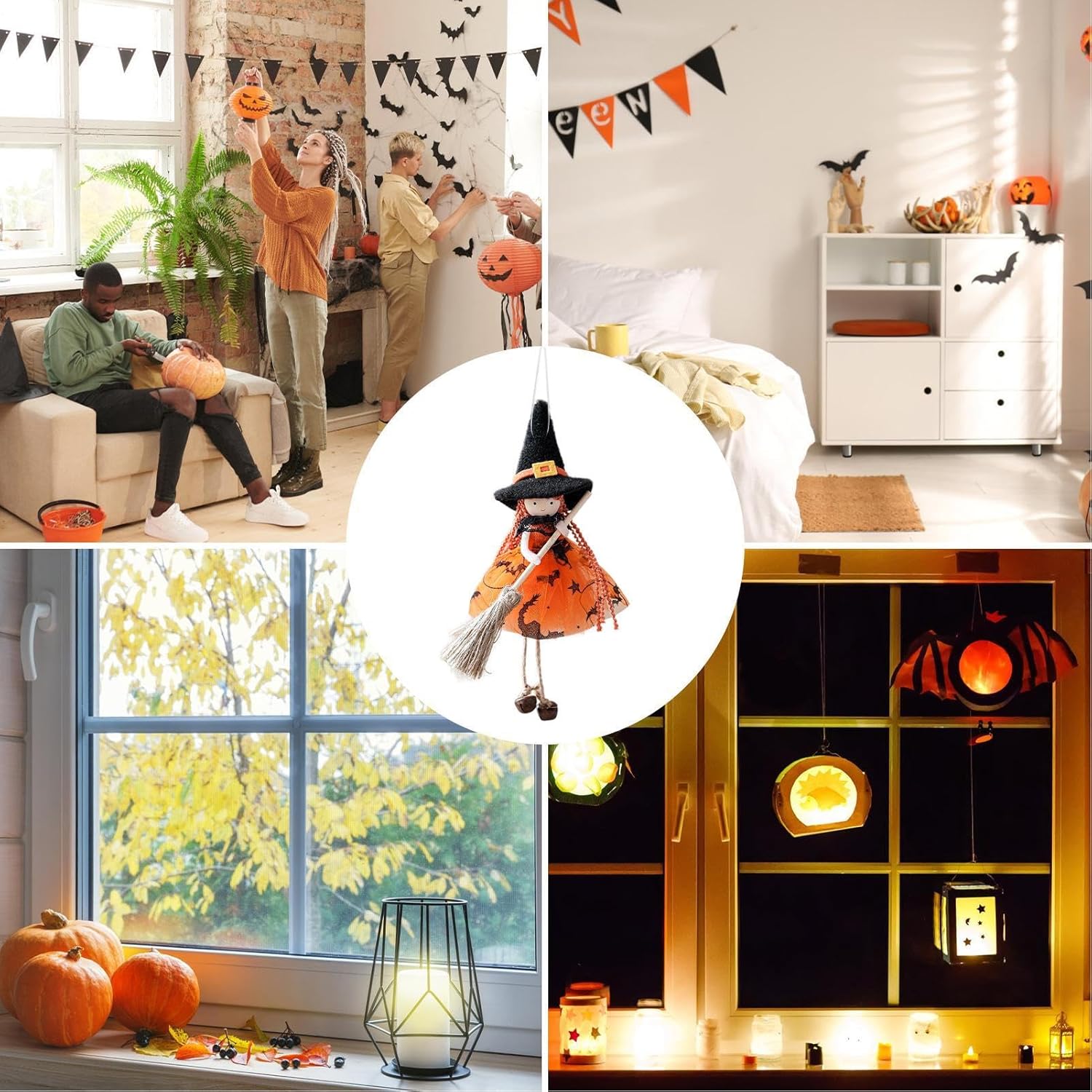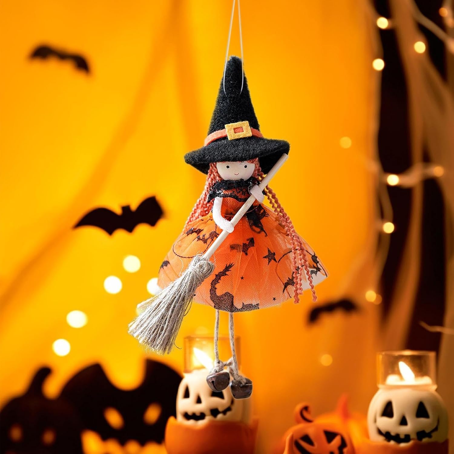 Soluzione decorativa senza tempo: perfettamente coordinata con le decorazioni festive, la strega della cucina crea scene di Halloween a più strati con una larghezza di 30 cm per un effetto spaziale impressionante in un design rustico senza tempo realizzato con materiali ecologici. Robusta e resistente al colore: realizzata in materiale liscio come la seta, questa bambola da strega resiste alla deformazione e allo sbiadimento. Offre una sensazione morbida e priva di pelucchi con una qualità di lunga durata e un drappeggio ottimale per le decorazioni. Pratica sospensione: può essere posizionata in diversi punti come ingressi di porte, finestre o rami con un gancio funzionale. Aggiunge fascino decorativo versatile senza occupare spazio prezioso. Incantevole decorazione: con ali d'angelo, campanelli e scope. Elementi in tulle e design intelligente creano un'atmosfera vacanziera dalla presenza enigmatica. Soluzione semplice per riporre gli oggetti: grazie al suo design pieghevole, la bambola richiede uno spazio minimo, mantiene sempre la sua struttura 3D ed è immediatamente a portata di mano quando necessario.