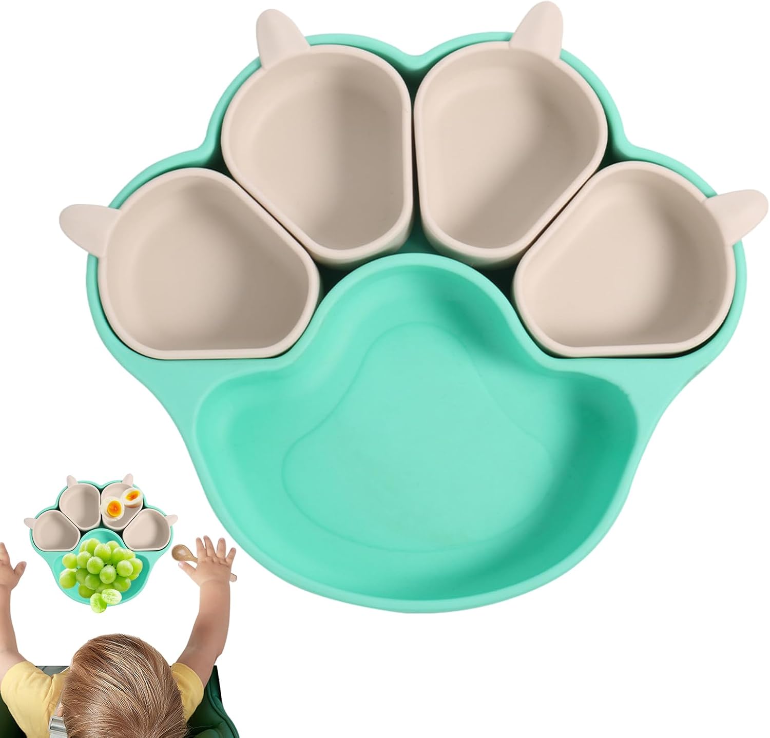 Materiali durevoli: Utilizzando silicone alimentare selezionato, il nostro piatto a ventosa offre qualità eccellente e alta resistenza alle alte temperature, garantendo un uso sicuro e duraturo per la tua famiglia Design carino: Il piatto a ventosa ha una forma stravagante ispirata alla zampa di un gatto, che aggiunge un tocco divertente ai momenti e invoglia i bambini a goderselo con entusiasmo Ampia gamma di usi: Offre una soluzione ideale per tutti i tipi di eventi, che si tratti di riunioni di famiglia o picnic all'aperto. Soddisfa le diverse esigenze degli asili e delle varie occasioni Maggiore sicurezza: con un design a ventosa grande e una ventosa potente, la nostra piastra a ventosa garantisce un fissaggio saldo al tavolo da pranzo e impedisce ai bambini di spingerla o ribaltarla Abitudini alimentari più sane: la nostra piastra a ventosa è progettata per promuovere abitudini alimentari sane separando cibi diversi per i bambini piccoli, promuovendo così l'indipendenza e l'autoalimentazione