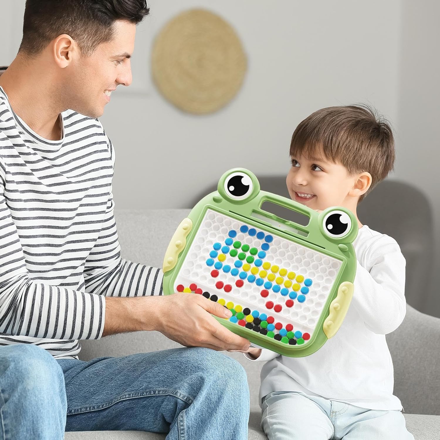 Materiale sicuro: le nostre tavole da disegno magnetiche sono realizzate in materiale ABS sicuro e con bordi lisci per un tempo di gioco senza preoccupazioni. La costruzione robusta garantisce un intrattenimento educativo di lunga durata per i bambini Miglioramento delle capacità cognitive: sblocca il potenziale di tuo figlio con questo tavolo da disegno magnetico. Promuovere la loro crescita cognitiva, sviluppare Fun Design: il tavolo da disegno magnetico con un accattivante design a forma di rana non solo attira l'attenzione dei bambini, ma aiuta anche a sviluppare la loro creatività e abilità motorie Grande uso: con infinite possibilità, ideale per giocare a casa, prima della scuola, all'asilo o all'aperto, la tavola da disegno magnetica è un must per ogni bambino curioso che deve Regalo ideale: goditi la divertente esperienza di educazione e intrattenimento con la tavola da disegno magnetica un regalo preferito per i bambini in occasione di compleanni, vacanze o un'occasione speciale