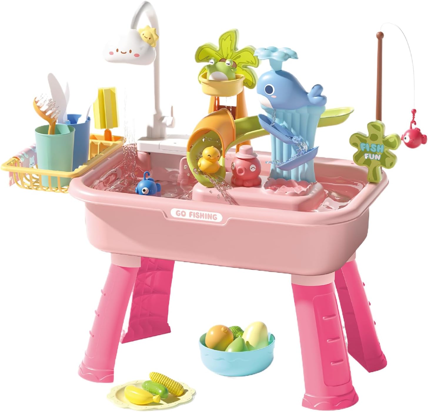 Design educativo del gioco di finzione: incoraggia l'apprendimento sensoriale e la creatività mentre i bambini giocano in acqua e sulla sabbia, aiutando a sviluppare le capacità motorie, la coordinazione e il pensiero fantasioso in modo interattivo e divertente. Robusta struttura in materiale PP: realizzata con una struttura leggera ma resistente, facile da pulire e ideale sia per l'uso interno che esterno durante i giochi di finzione dei bambini e le attività acquatiche. i bambini vogliono giocare ed esplorare Adatto per uso esterno ed interno: perfetto per giardini, piscine, scuole e case che offre un'area lavandino dove i bambini possono rinfrescarsi divertirsi e godersi giochi acquatici educativi in qualsiasi momento in un ambiente sicuro Regalo amichevole per le attività dei bambini: progettato per intrattenere e coinvolgere i bambini per ore in varie occasioni, tra cui compleanni, riunioni di famiglia, picnic all'aperto e appuntamenti di gioco che migliorano lo sviluppo sociale e sensoriale