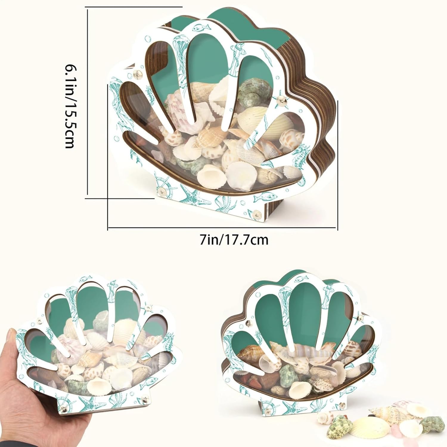Vetrina decorativa in legno con conchiglie con coperchio trasparente progettata per proteggere e mostrare le conchiglie raccolte dalle gite in spiaggia per bambini e collezionisti Il design portatile e leggero consente un facile trasporto e una conservazione sicura delle conchiglie, perfetta per l'uso a casa, bagni, soggiorni o aule La parte superiore trasparente trasparente offre piena visibilità proteggendo al contempo le delicate conchiglie da polvere, danni e umidità durante l'esposizione o la conservazione Supporto multiuso ideale per organizzare, esporre e preservare vari piccoli oggetti da collezione e tesori naturali con un'elegante decorazione domestica dall'aspetto artigianale garantisce una protezione duratura e un modo attraente per condividere la spiaggia ricordi e reperti naturali con la famiglia e gli amici