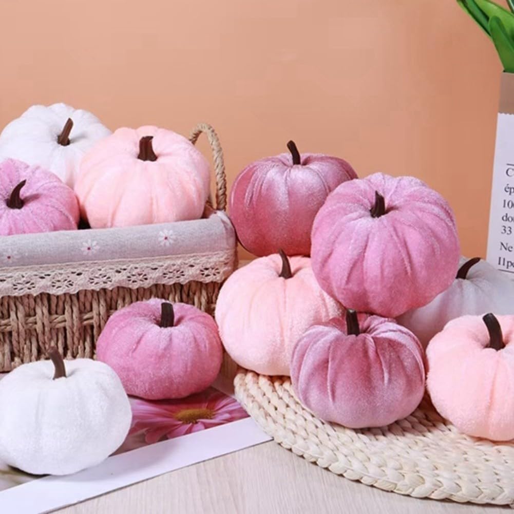 [Incredibile confezione vantaggio] Goditi un totale di 12 zucche in velluto di peluche nei toni del rosa e del bianco, che offrono ampia varietà per la tua decorazione autunnale. [Tonalità vivaci per migliorare l'atmosfera] I colori ricchi aggiungono un tocco festoso che illumina qualsiasi evento, rendendolo perfetto per le celebrazioni stagionali. [Diverse dimensioni per arrangiamento creativo] Con dimensioni comprese tra 10,2 cm e 9,9 cm, è possibile combinarle per un accattivante richiamo visivo sul tavolo da pranzo o sul camino. Morbide e materiali] Realizzate in schiuma con una finitura in velluto morbido, queste zucche non sono solo visivamente accattivanti, ma anche sicure da maneggiare per tutte le età. Multiuso: perfette per cene del Ringraziamento o feste di Halloween, queste zucche sono deliziose centrotavola o oggetti di scena giocosi per foto indimenticabili.