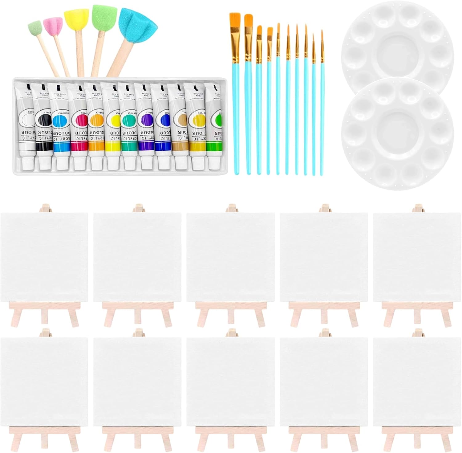 Divertimento Creativo: Vernici acriliche lavabili con colori vivaci e formula sicura per l'infanzia, rendono la pulizia con acqua semplice ispirando sessioni creative immaginative Gioco e Sviluppo: Combina divertimento e sviluppo di capacità motorie per giovani artisti emergenti dai 3 anni in su, nutrendo la creatività con attività pratiche coinvolgenti grazie a questo set tela e colori completo. Intrattenimento Artistico: Set ideale per creazioni murali e laboratori familiari, regala esperienze creative uniche e si trasforma in un pensiero speciale per persone care amanti 'arte Compagno Artistico in Viaggio: Set tela e colori con design compatto e portatile, include custodia per trasporto organizzato e praticità all'aperto, ideale per sessioni creative ovunque durante viaggi o escursioni Pronto per creare: Kit pittorico completo con 10 mini, cavalletto in legno e tutto l'occorrente per iniziare progetti artistici in modo semplice e immediato