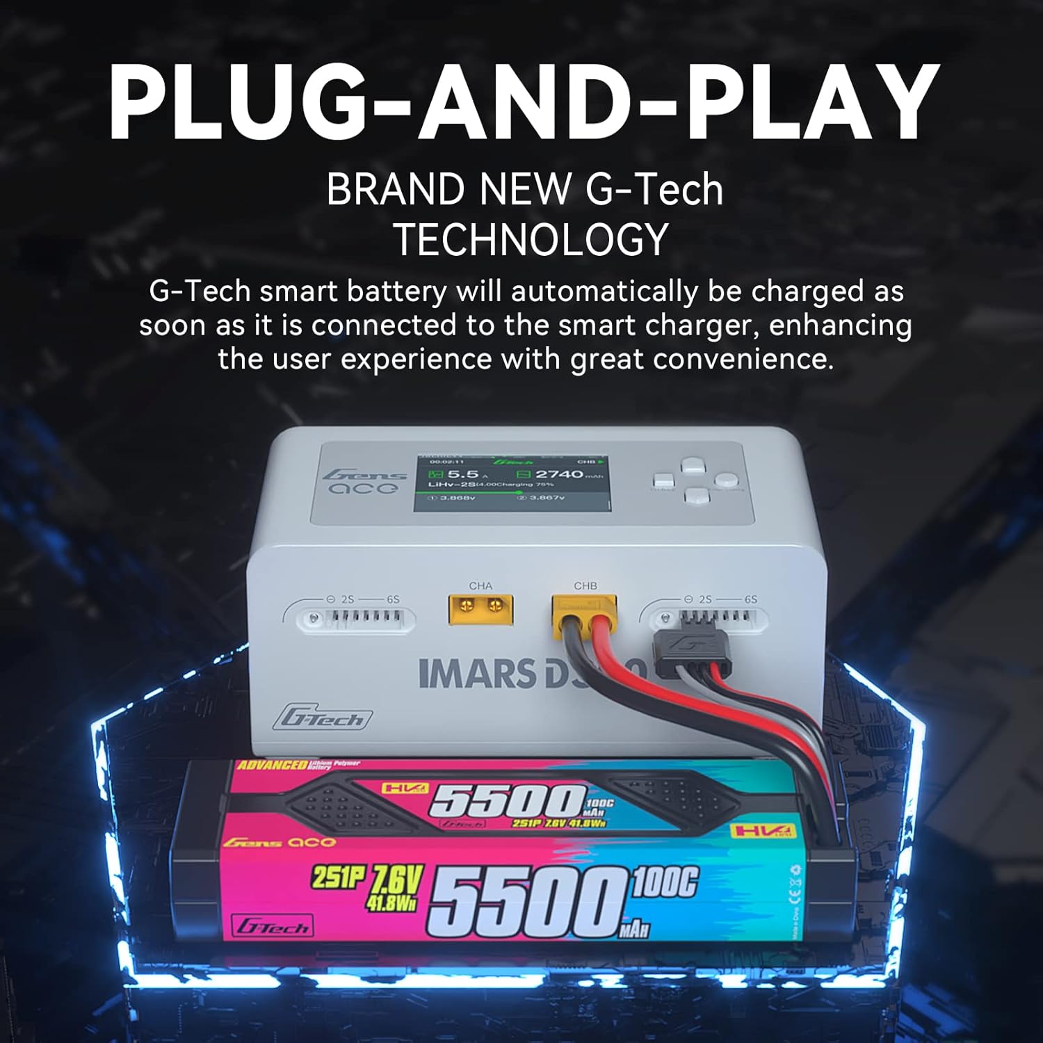 🚀【Parametri】Caricabatterie Gens Ace Imars Dual Smart Balance con velocità di ricarica di 16 A, intervallo di tensione mondiale da 100 V a 240 V e un'uscita di 300 watt CA, 350 watt CC*2. Ideale per batterie FPV e auto 🚀【Applicazioni】 Prestazioni: Tensione di carica: AC100-240V;DC7-30V / Potenza di carica massima: AC 300W, DC 350W*2 / Corrente di carica: 0,1~16A / Corrente di scarica: 0,1~3A / Bilanciamento cella: 1~6s / Uscita USB: 5V/2,4A 🚀【Specifiche】Durante la ricarica prodotto, la tensione totale dell'attività corrente, la corrente di carica/scarica, l'orario di lavoro e altre informazioni possono essere visualizzate in tempo reale attraverso la finestra di visualizzazione; Può anche interrogare informazioni sulla tensione di una singola cella, resistenza interna e temperatura in tempo reale, il che è utile per gli utenti per comprendere la carica della batteria e lo stato di carica. 🚀【Vantaggio】 La potenza è 300 watt CA, 350 watt CC * 2 (2 canali), la corrente di carica massima è 16 A, la corrente di carica è regolabile e l'uso e il funzionamento sono semplici. 7 modalità operative dei prodotti includono ricarica, scarica, bilanciamento, risparmio, ExtDischarge, SyncCharging, alimentazione digitale 🚀【Pacchetto】 Caricabatterie doppio Gens ace iMars D300, cavo di ingresso CA / adattatore XT60-T * 2 / adattatore XT60-EC5 * 2 / adattatore XT60-EC3 * 2 / Manuale dell'utente