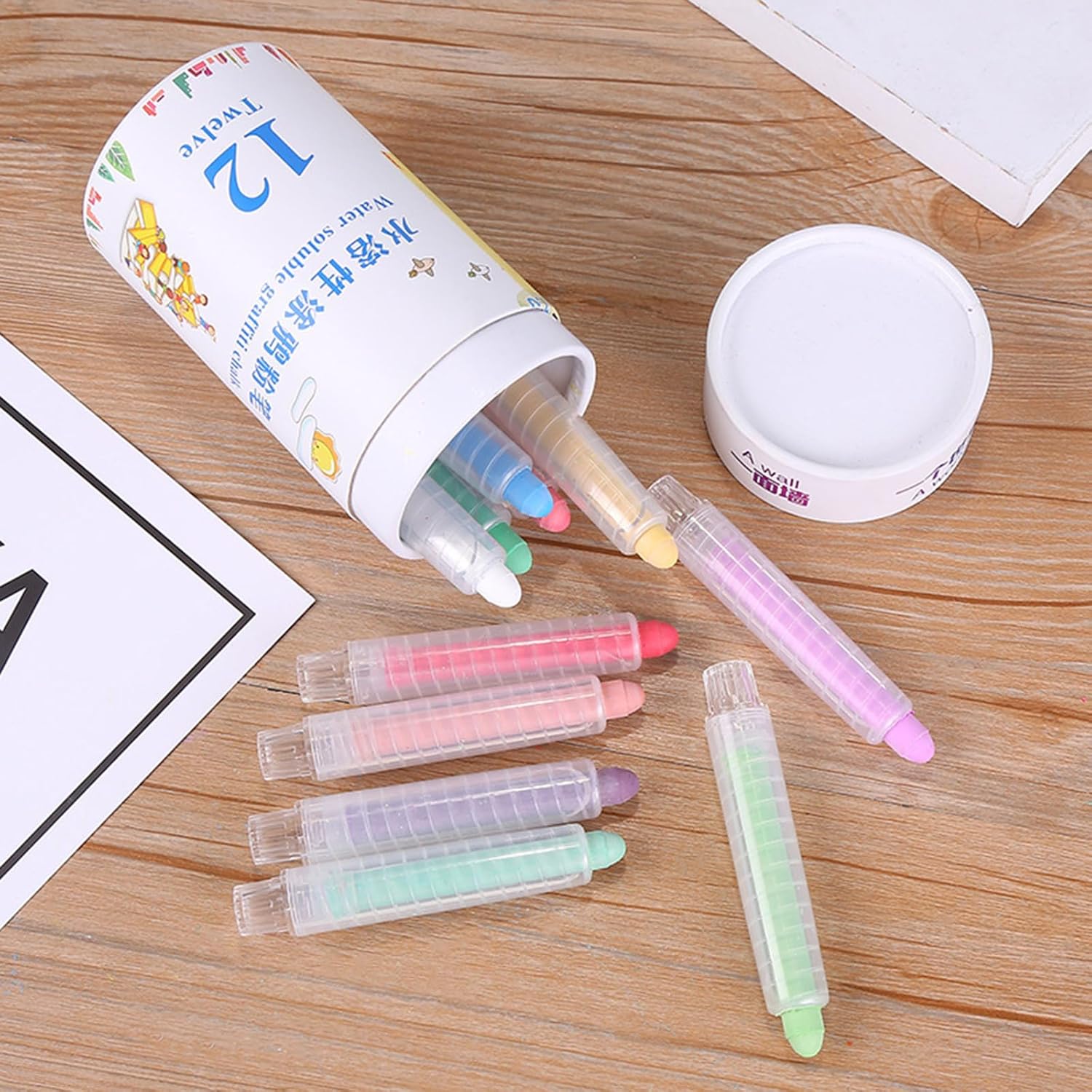 Perfetto per ufficio, scuola, pittura su lavagne, carta, finestre, legno per scrivere, disegnare e scarabocchiare per bambini. Il nostro gesso solubile in acqua e facile da pulire. Pulisci semplicemente con acqua o un panno umido. La confezione include 12 gessetti senza polvere. Può essere utilizzato su lavagne, lavagne, lavagne, pareti, pavimenti, ecc. Questo gesso colorato è una scelta meravigliosa per i bambini che amano disegnare. Perfetto per la scuola, il campo estivo. Il nostro portagesso da marciapiede senza polvere con portagesso e questo portagesso rotante potrebbe tenere la mano lontana dallo sporco. Realizzato con sicurezza per bambini