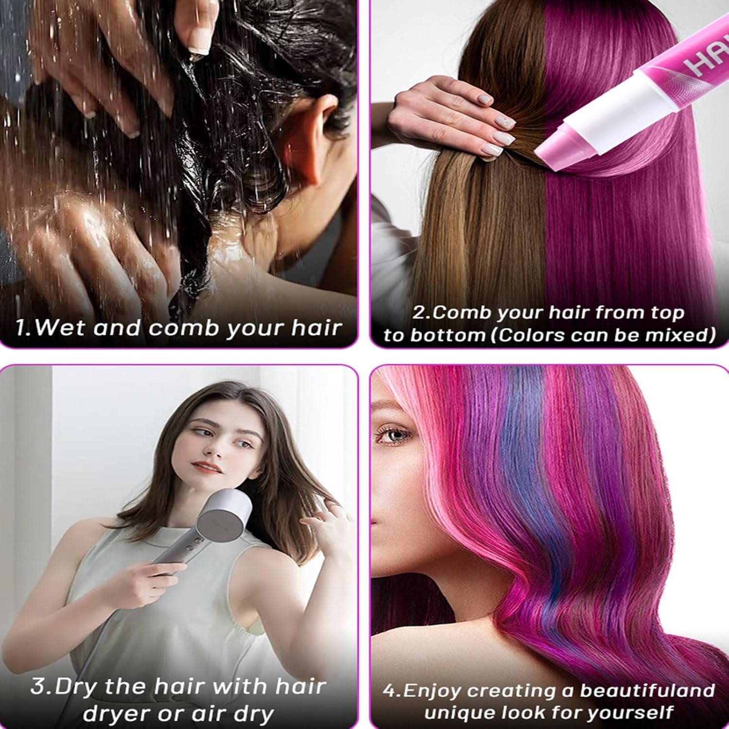 Praticità d'uso: Garantisce colorazione profonda adattabile ai capelli scuri attraverso applicazione a strati modulabili, effetto longevo post-essiccazione e pulizia immediata con acqua per una gestione semplificata Regalo significativo: Gessetti per capelli dai colori vivaci, perfetti per styling creativo a feste ed eventi. Facile da usare per bambini dai 3 anni in su, offre un modo divertente e sicuro per sperimentare look audaci e colorati senza rovinare i capelli. Ideale per gioco immaginativo e momenti speciali. Non Irrita: La composizione ipoallergenica senza componenti aggressivi protegge cute e capelli, permettendo ai più giovani di esprimere la creatività senza fastidi o arrossamenti.