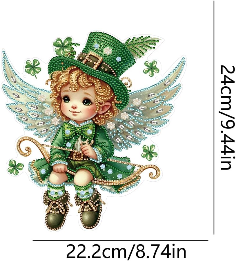 Pittura diamante acrilico pendente pendente trifoglio angelo cristallo su un lato appeso decorazione della parete di casa 5D fai da te pittura diamante punto pendente for decorazione della finestra del giardino