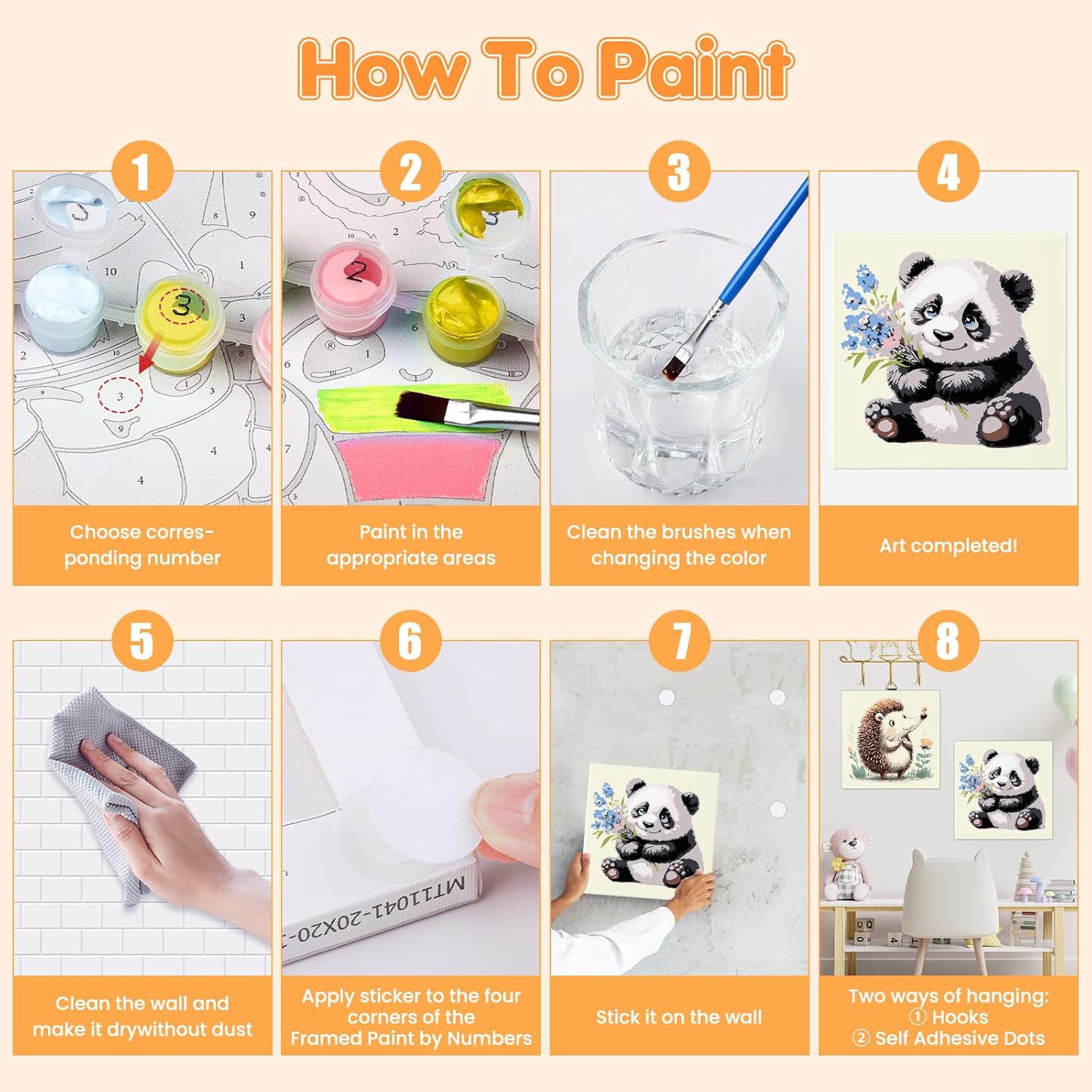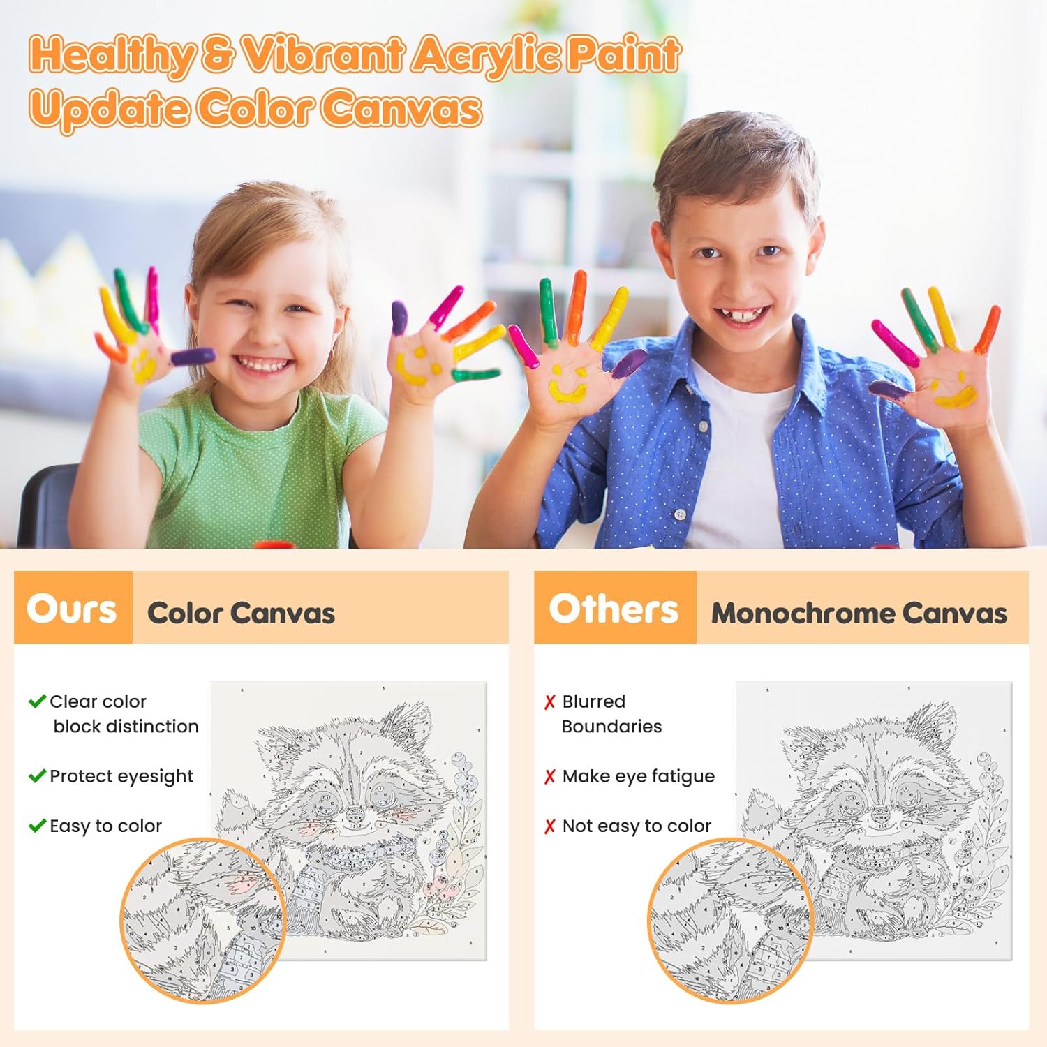 Contenuto della confezione: tutto ciò di cui hai bisogno è incluso nel nostro kit di pittura con numeri su tela. Ogni set contiene una bella tela incorniciata con disegni di cartoni animati, vernici di alta qualità e due pennelli con diversi pennini. Forniamo anche ganci e punti autoadesivi per appendere i loro capolavori alla parete. I kit di pittura con i numeri per bambini possono ispirare la creatività, non guardare oltre la nostra "Paint by Number 4-Pack"! Divertente e facile da dipingere: utilizzare la nostra pittura con numeri con cornice è un ottimo modo per rilassarsi e aiutare a migliorare le abilità manuali di pittura. Non sono richieste abilità di pittura, basta dipingere la tela con il numero appropriato, rendendo la pittura divertente e facile per principianti e professionisti. Pigmenti acrilici di alta qualità: i nostri dipinti per bambini utilizzano colori acrilici sani per colori duraturi e una copertura forte e possono essere facilmente lavati via con acqua e sapone, quindi è sicuro da usare per i bambini. Tela prestampata digitale trasparente è tela di lino di alta qualità. Tutto è realizzato in materiale resistente e di alta qualità che durerà dopo un uso ripetuto. Aumenta la brillantezza artistica del tuo bambino: questa vernice per bambini è perfetta per i bambini che stanno appena iniziando a esplorare la loro creatività o per coloro che hanno già approfondito il mondo dell'arte! È un materiale artigianale divertente e innovativo per i bambini che possono esercitare le abilità pratiche dei bambini, la coordinazione occhio-mano, l'espressione creativa e la fiducia in se stessi, in modo che possano innamorarsi del fai da te e stare lontano dai prodotti elettronici. Ottima idea regalo: il kit per dipingere con i numeri dei cartoni animati per bambini è il regalo perfetto. Regalo perfetto per ragazze e ragazzi. Adatto per Natale, Ringraziamento, Capodanno o regalo di compleanno, goditi il buon tempo e comunica! Non importa quanto sei bravo o cattivo a dipingere, sarai in grado di creare un dipinto splendidamente realizzato!