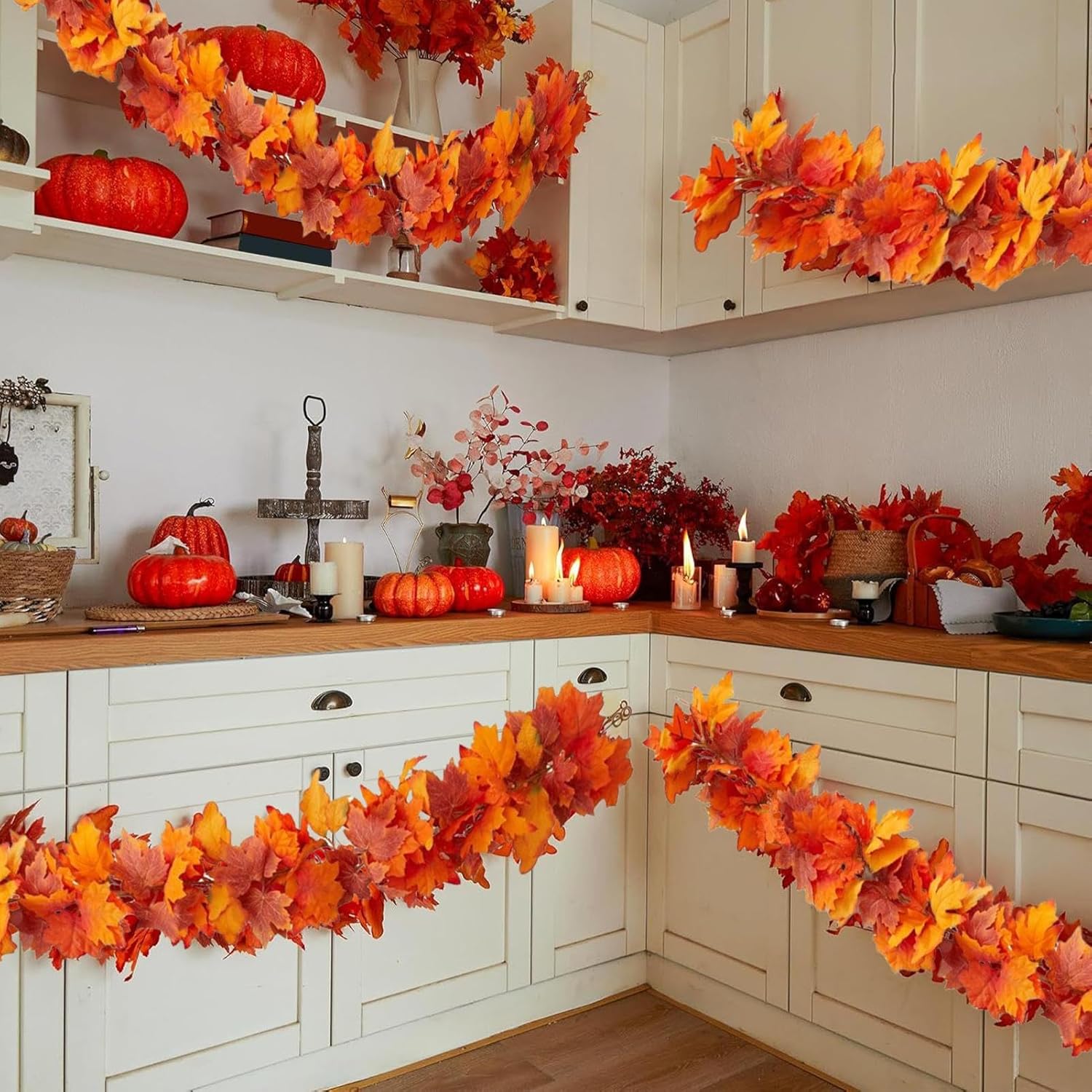 Set di 4 ghirlande foglie in finta foglia: include 4 ghirlande resistenti alle intemperie, perfette per decorare il , l'ingresso, il patio, il balcone, il cortile, il giardino o le finestre con vibranti colori autunnali. Durevole e resistente alle intemperie: realizzati con materiali di alta qualità progettati per resistere agli elementi esterni, mantenendo il tuo arredamento stagionale luminoso e intatto per tutta la stagione. Decorazione stagionale versatile: ideale per il Ringraziamento, le celebrazioni del raccolto o l'atmosfera autunnale di tutti i giorni sia all'interno che all'esterno. Facile da appendere e organizzare: ghirlande leggere possono essere rapidamente drappeggiate su ringhiere, pareti, porte o finestre per decorazioni senza problemi. Migliora il tuo spazio autunnale: aggiunge un tocco caldo e festivo a qualsiasi giardino anteriore, patio, ingresso o spazio interno, creando un'atmosfera autunnale accogliente.