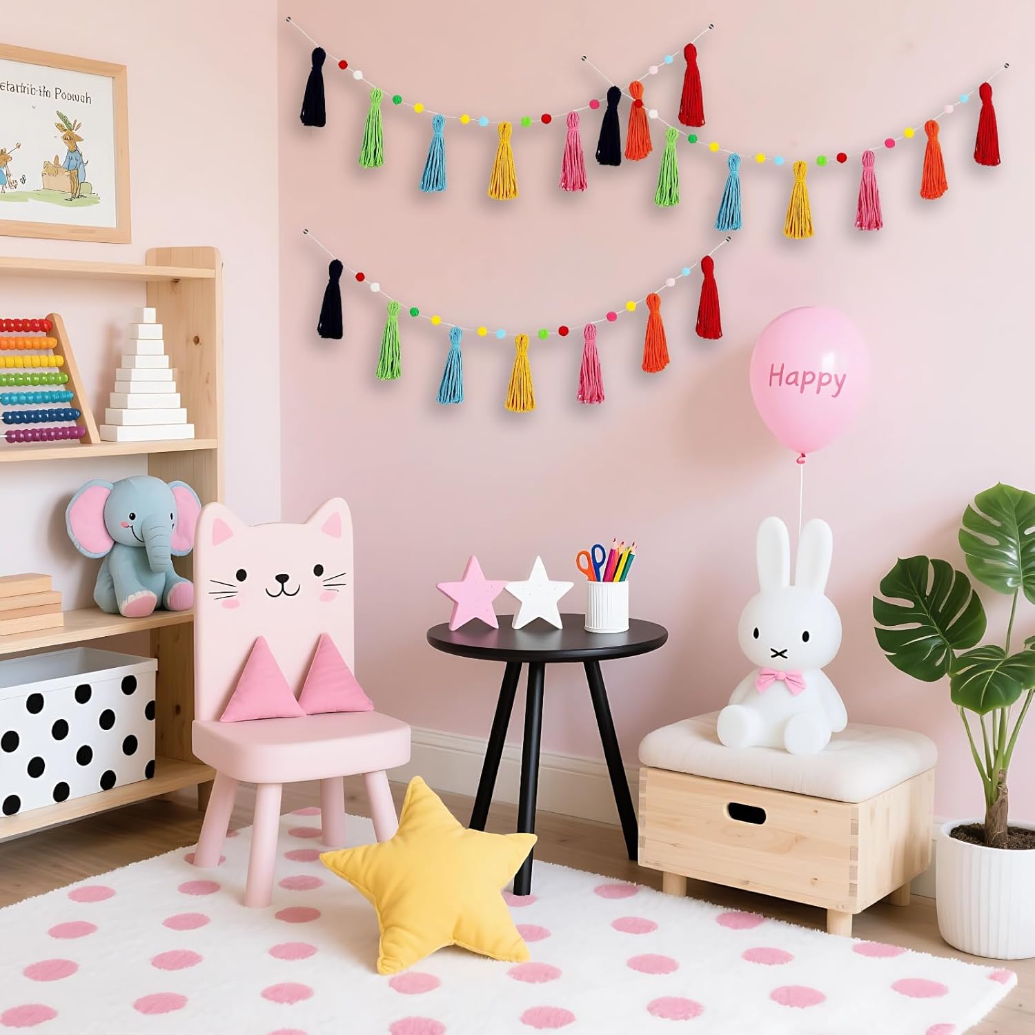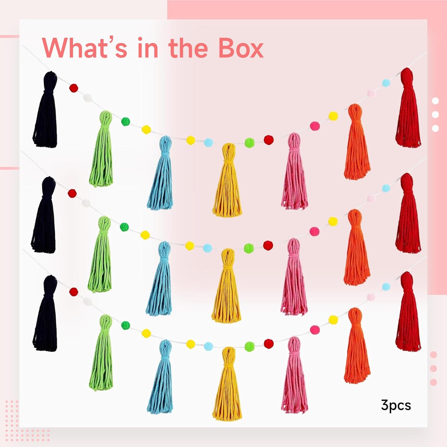 Decorazione stravagante: trasforma asili, aule e feste con questa vivace ghirlanda boho a tre pezzi; vanta sfumature arcobaleno e nappe giocose; eleva istantaneamente qualsiasi spazio con un tocco bohémien Design strutturato: goditi la consistenza morbida e soffice dei nostri eccellenti pompon in lana; ogni nappa ondeggia con grazia, aggiungendo un tocco di fantasia e fascino Grafica amplificata: crea un display più pieno e accattivante con tre fili di ghirlanda; organizza in modo creativo per un maggiore impatto decorativo Posizionamento versatile: drappeggia questo banner decorativo su qualsiasi parete per un display artistico; offrendo opzioni di decorazione flessibili per vari spazi Ambiente festivo: infondere gioia e calore nelle feste in casa e nelle riunioni in classe; crea un'atmosfera memorabile con questa ghirlanda colorata