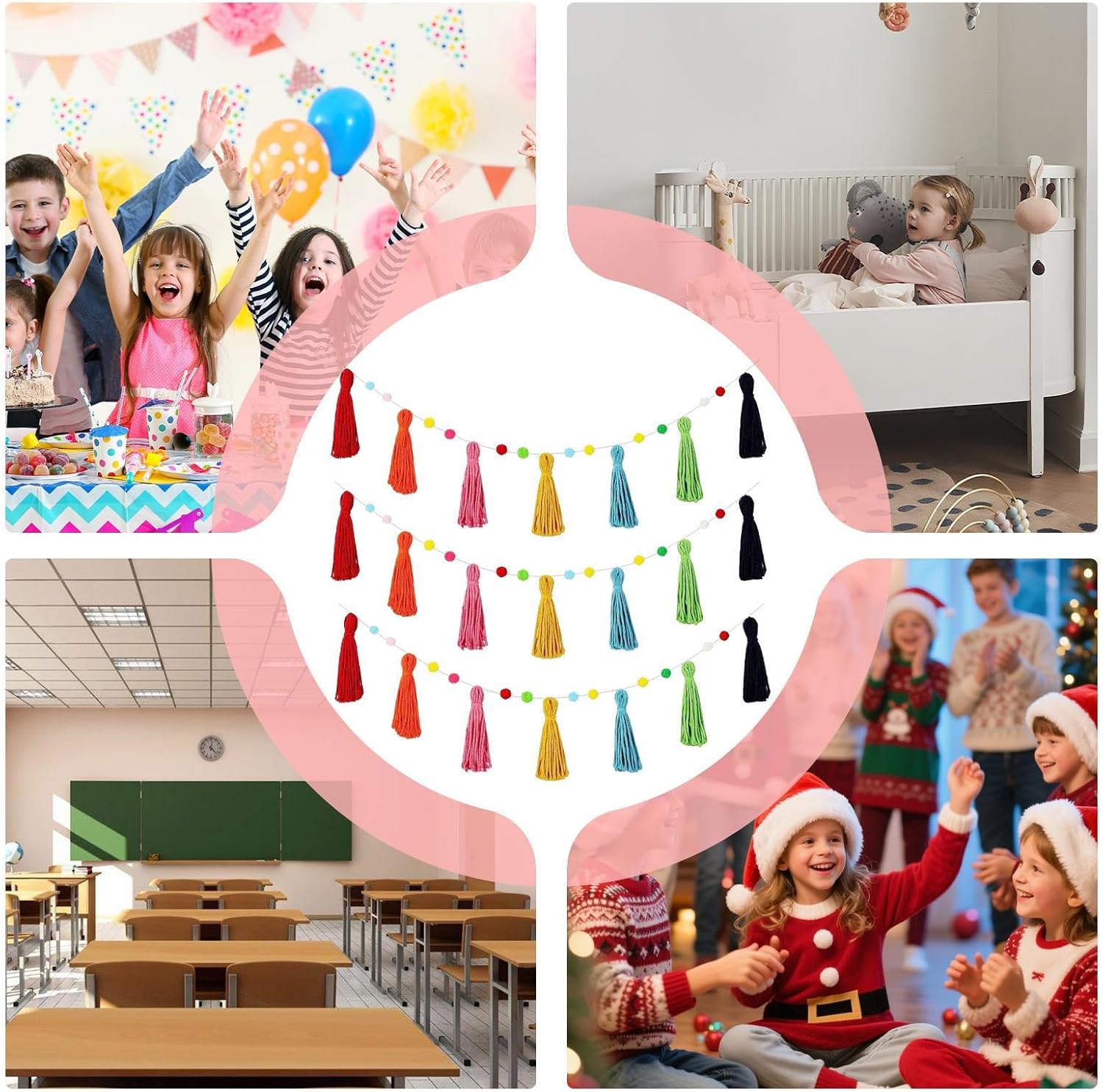 Decorazione Conveniente: Questa ghirlanda di nappe offre un set multiplo per stile coordinato in diversi spazi, soluzione ma elegante per abbellire case, locali o eventi speciali con un design bohémien senza Ampiamente utilizzabile: Progettata per ravvivare qualsiasi ambiente, questa ghirlanda bohémien per aule dona vita alle pareti e crea un'atmosfera allegra, funzionando efficacemente come sfondo per feste o decorazione versatile durante vacanze e occasioni speciali Decorazione Vivace: La ghirlanda bohémien con perline in legno arricchisce qualsiasi ambiente con un tocco vibrante, perfezionando la decorazione domestica e creando un'atmosfera creativa per soggiorni, camere da letto o feste Facile Posizionamento: Questa ghirlanda di nappe è pronta per essere esposta immediatamente dopo l'apertura della confezione, eliminando i tempi di preparazione e consentendo decorazioni rapide che arricchiscono qualsiasi spazio con eleganza colorata, ideale per feste e eventi tematici Ghirlanda di Nappe Sicura: Realizzata in cotone morbido e materiale solido privo di schegge, questa decorazione offre massima sicurezza per i bambini e si adatta con stile a camerette e feste, aggiungendo un tocco bohémien senza rischi durante l'utilizzo grazie alla sua composizione innocua e resistente