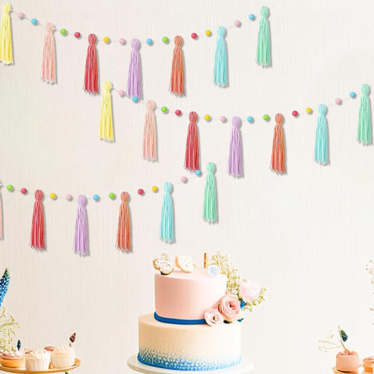 Must-have decorativo Boho: questa ghirlanda di perline di legno e nappe colorate aggiunge carattere a qualsiasi stanza con il suo giocoso stile boho e migliora senza sforzo l'atmosfera artistica in vari ambienti come dormitori, cortili o feste a tema con il suo fascino ed estetica per un'atmosfera invitante. Varie forme incluse: con la sua funzione di configurazione rapida, la ghirlanda con nappe come decorazione per feste semplifica la decorazione, consentendo agli ospiti di concentrarsi sugli ospiti e aggiungendo fascino a sfondi, tavoli o ingressi in occasioni speciali. Decorazione boho sicura: la ghirlanda combina morbido cotone con materiale antischegge per creare uno splendore di nappe a misura di bambino. I genitori organizzano le celebrazioni o la vita di tutti i giorni con sicurezza. Un'attrazione versatile per occasioni festive e interni accoglienti con sicurezza garantita. Ampia gamma di usi: questa ghirlanda con frange boho aggiunge un'atmosfera allegra alle aule e alle celebrazioni con accenti di colore festosi. Ideale come sfondo per feste o decorazione murale per feste ed eventi a tema. Crea un ambiente accogliente negli spazi educativi e negli incontri sociali. Armonioso: la ghirlanda di nappe garantisce il coordinamento in più zone, crea un ambiente curato e migliora l'aspetto in occasione di baby shower, anniversari o eventi festivi