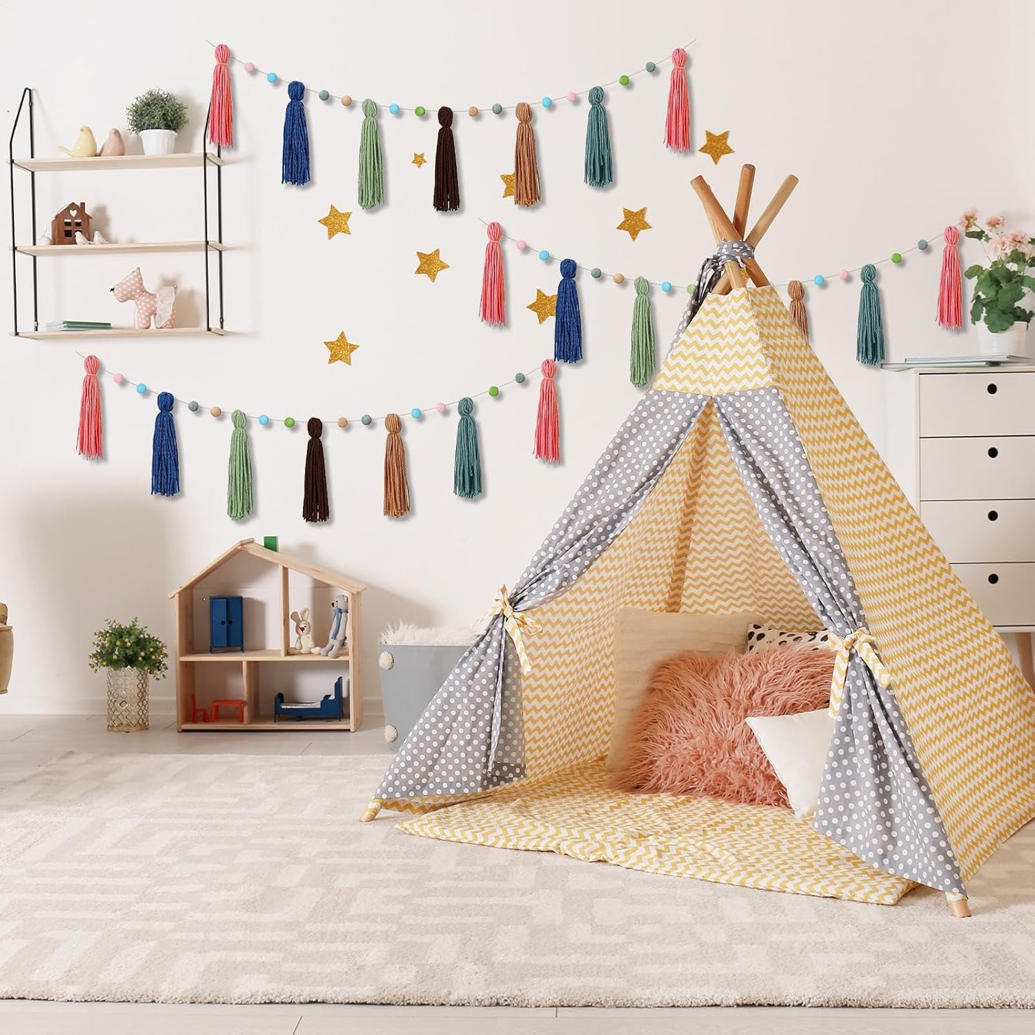 Decorazione Conveniente: Questa ghirlanda di nappe offre un set multiplo per stile coordinato in diversi spazi, soluzione ma elegante per abbellire case, locali o eventi speciali con un design bohémien senza Ampiamente utilizzabile: Progettata per ravvivare qualsiasi ambiente, questa ghirlanda bohémien per aule dona vita alle pareti e crea un'atmosfera allegra, funzionando efficacemente come sfondo per feste o decorazione versatile durante vacanze e occasioni speciali Creatore di Atmosfera Artistica: Grazie a perline e nappe, questa ghirlanda introduce un elemento bohémien giocoso ma elegante, ravvivando feste, camerette o interni domestici con una vivace atmosfera artistica e decorativa Setup Rapido Senza Attrezzi: La decorazione di ghirlanda di nappe permette allestimenti vibranti per celebrazioni senza bisogno di strumenti, risparmiando e garantendo un look curato, perfetta per compleanni, matrimoni o festività Ghirlanda Boho per Bambini: Realizzata in cotone morbido e materiale solido resistente senza schegge, priorizza la sicurezza infantile ed è ideale per decorare camerette o eventi familiari, regalando bellezza e tranquillità con le sue nappe decorative di qualità affidabile