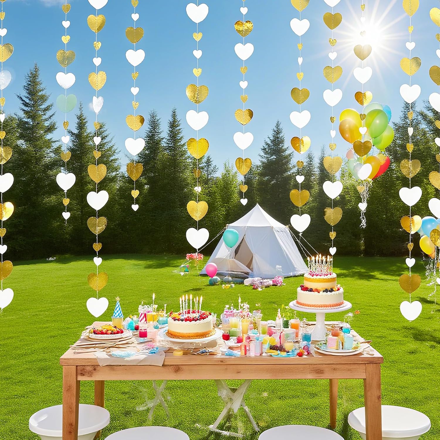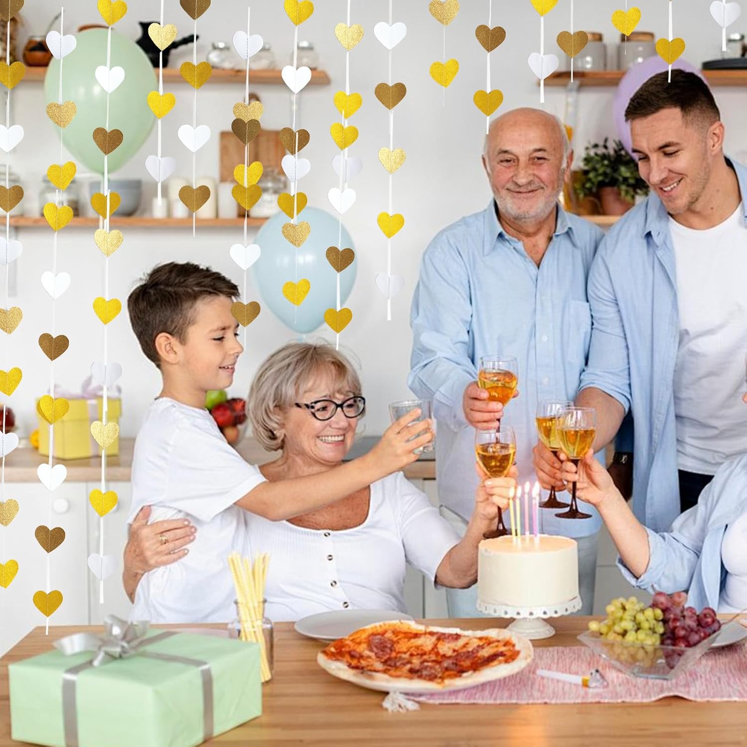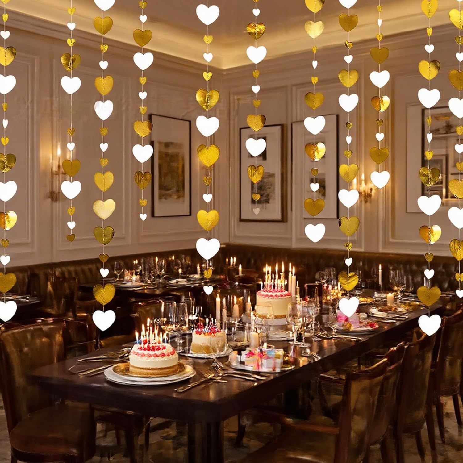 Elegante decorazione per matrimonio: questa ghirlanda a forma di cuore da 15,8 m aggiunge un tocco di romanticismo a qualsiasi evento. Ideale per matrimoni, feste di fidanzamento e celebrazioni di anniversario, crea un'atmosfera calda e festosa con la sua combinazione di colori oro e bianco. Perfetto per decorare stanze, case e luoghi per celebrare l'amore. Lunghezza generosa per un uso versatile: con 4 set di ghirlande per striscioni per feste, ognuna misura 4 metri, la lunghezza totale raggiunge un impressionante 52 piedi (16 metri). Questa ampia lunghezza consente di decorare facilmente grandi spazi, che si tratti di un ricevimento di nozze, una festa di fidanzamento o una riunione di anniversario. Varie occasioni: dalle decorazioni per feste di nozze all'arredamento per feste di fidanzamento, questo versatile streamer è progettato per migliorare qualsiasi occasione speciale. Che tu stia per sposarti, festeggiare un anniversario o ospitare una festa di compleanno, il design a forma di cuore si adatta perfettamente a una varietà di temi e ambientazioni. Facile da appendere e stile: realizzato per comodità, questa ghirlanda è leggera e facile da appendere. Puoi facilmente drappeggiarlo su pareti, soffitti o spazi per eventi per creare effetti visivi sorprendenti. I toni oro e bianco completano qualsiasi arredamento, rendendolo ideale sia per eventi interni che esterni. Ideale per più celebrazioni: non solo questa ghirlanda è adatta per decorazioni di matrimoni e fidanzamenti, ma è anche ideale per celebrazioni di anniversario, eventi di San Valentino o compleanni. Il suo design senza tempo porterà un tocco di amore e gioia a qualsiasi riunione, rendendolo una scelta versatile per tutti i tipi di celebrazioni.
