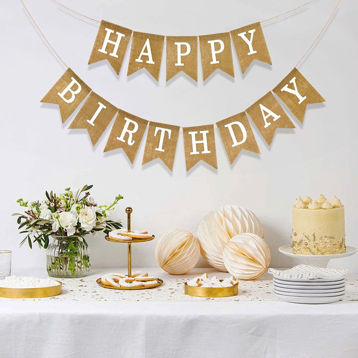 Striscione di compleanno in tela: tela di iuta naturale al 100%, resistente e riutilizzabile. CONFEZIONE PORTATILE: lettere su bandiere da 5 "x 7" con cordino da 7/8 piedi. Semplice ma classico, facile da appendere e riporre. Facile da usare: lo striscione di compleanno in tela è pronto per essere appeso. Basta aprirlo e appenderlo ovunque. Questo ti farà risparmiare tempo e ti permetterà di goderti le tue feste. Banner di compleanno neutro: si abbina a qualsiasi tema di decorazione di compleanno, ad es. B. per il primo compleanno di un bambino, il 3° compleanno, il 21° compleanno, il 30° compleanno o anche l'80° compleanno di tua nonna. Decorazione di compleanno Boho: puoi appendere lo striscione di compleanno sopra il tavolo della torta, sul muro, sul soffitto, tra gli alberi o dove preferisci come sfondo fotografico.