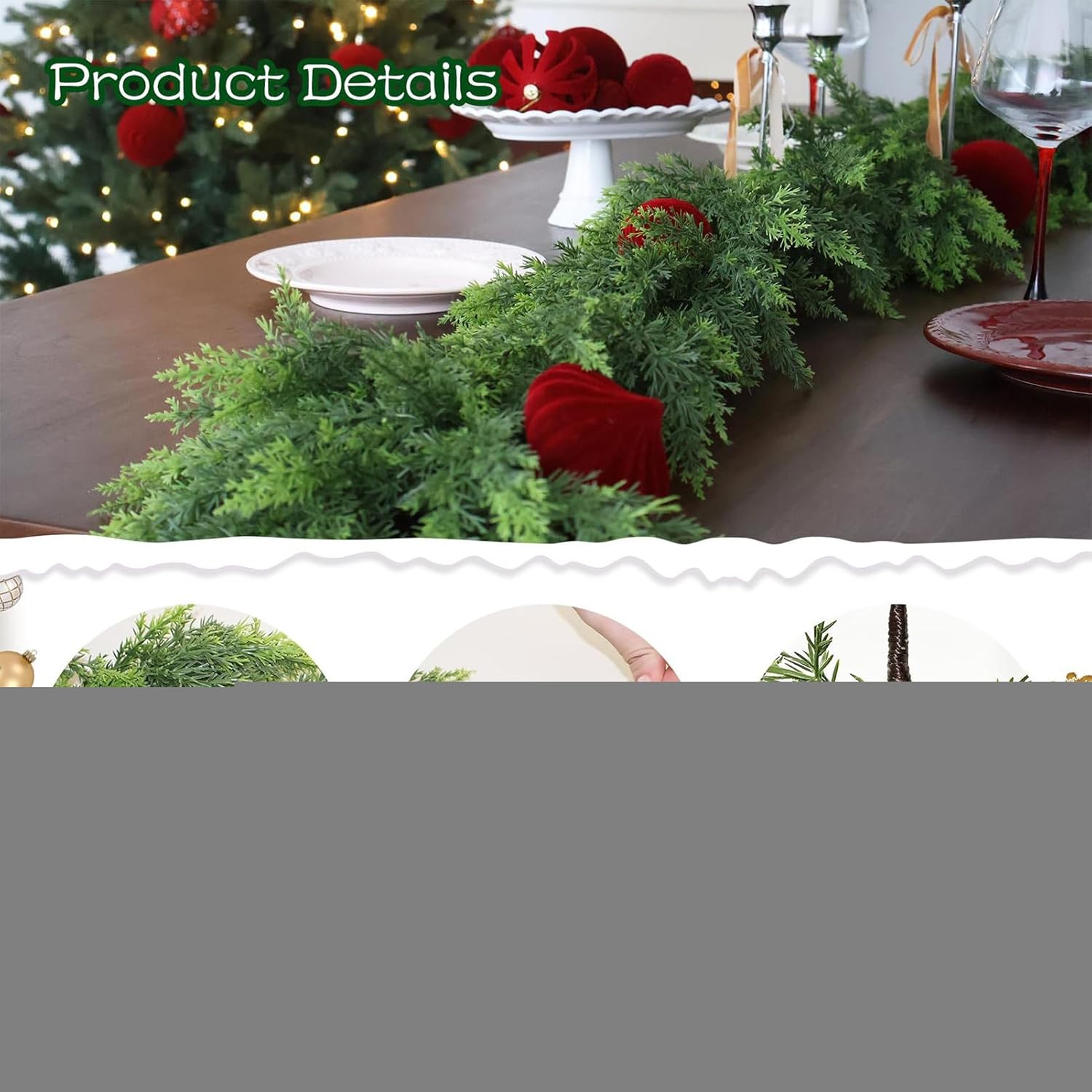 Affascinante accento stagionale: progettato con rami e fogliame verde, mostra un lavoro meticoloso e sfumature di verde naturale, aggiungendo un'atmosfera e fascino natalizio grazie al suo aspetto vivace. Flessibilità decorativa creativa: progettata con una struttura a vite pieghevole, questa ghirlanda combina durata e versatilità, ideale per decorare porte, centrotavola o composizioni festive in vari ambienti decorativi Regalo creativo: illumina le celebrazioni di Natale, Capodanno e compleanni con questa affascinante ghirlanda di cedro; mostra la tua benevolenza e attenzione attraverso presenti che rafforzano i legami con la famiglia, gli amanti e gli amici Sensazione autentica di cedro: progettata per imitare il cedro appena raccolto con superfici lisce e morbide in PVC adattabile. Si adatta perfettamente alla decorazione di feste in interni, unisce sicurezza, realismo e comfort. Decorazione versatile: questa ghirlanda di cedro natalizio si adatta agli stili di decorazione grazie al suo aspetto rustico naturale, perfetta per abbellire camini, portici e spazi interni o esterni con un'eleganza senza tempo e calda alle feste