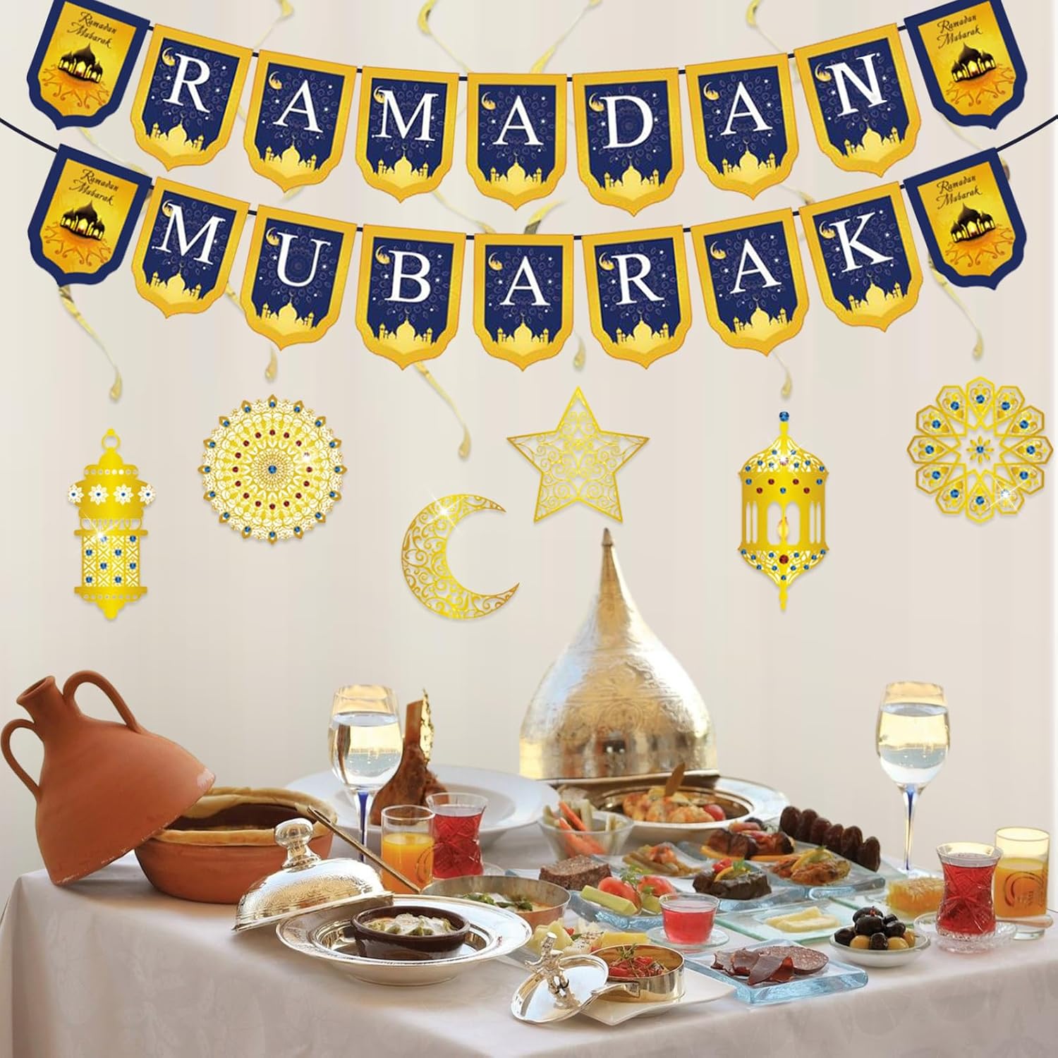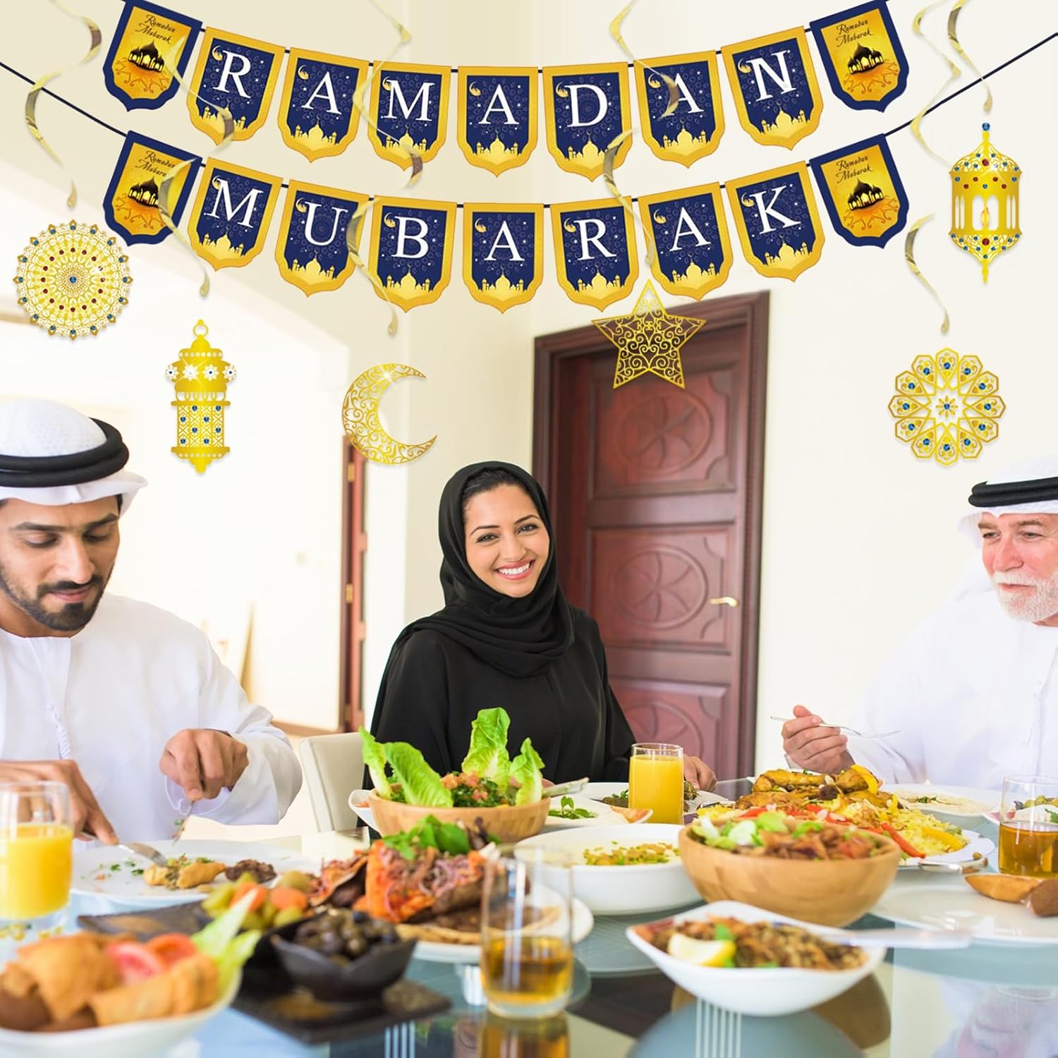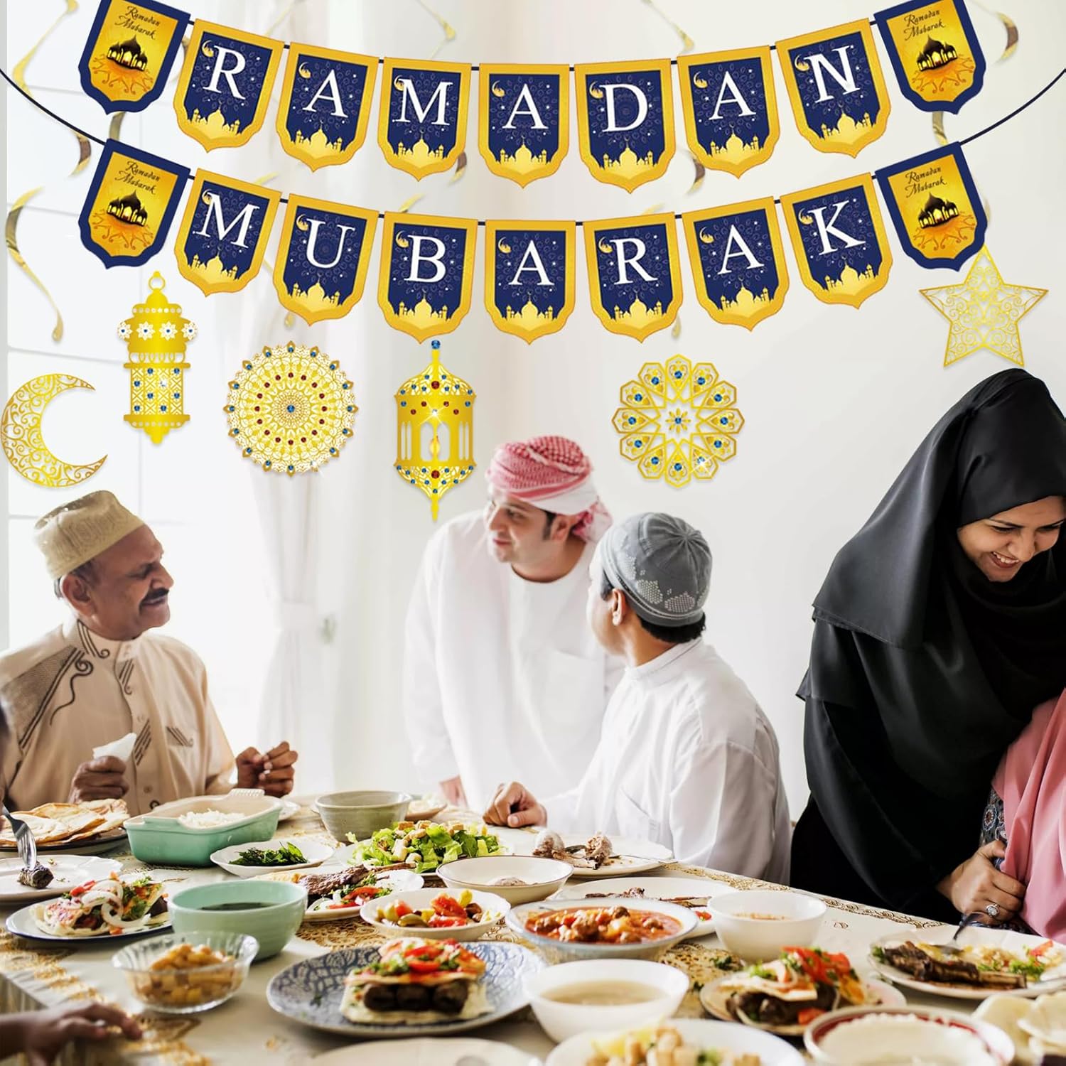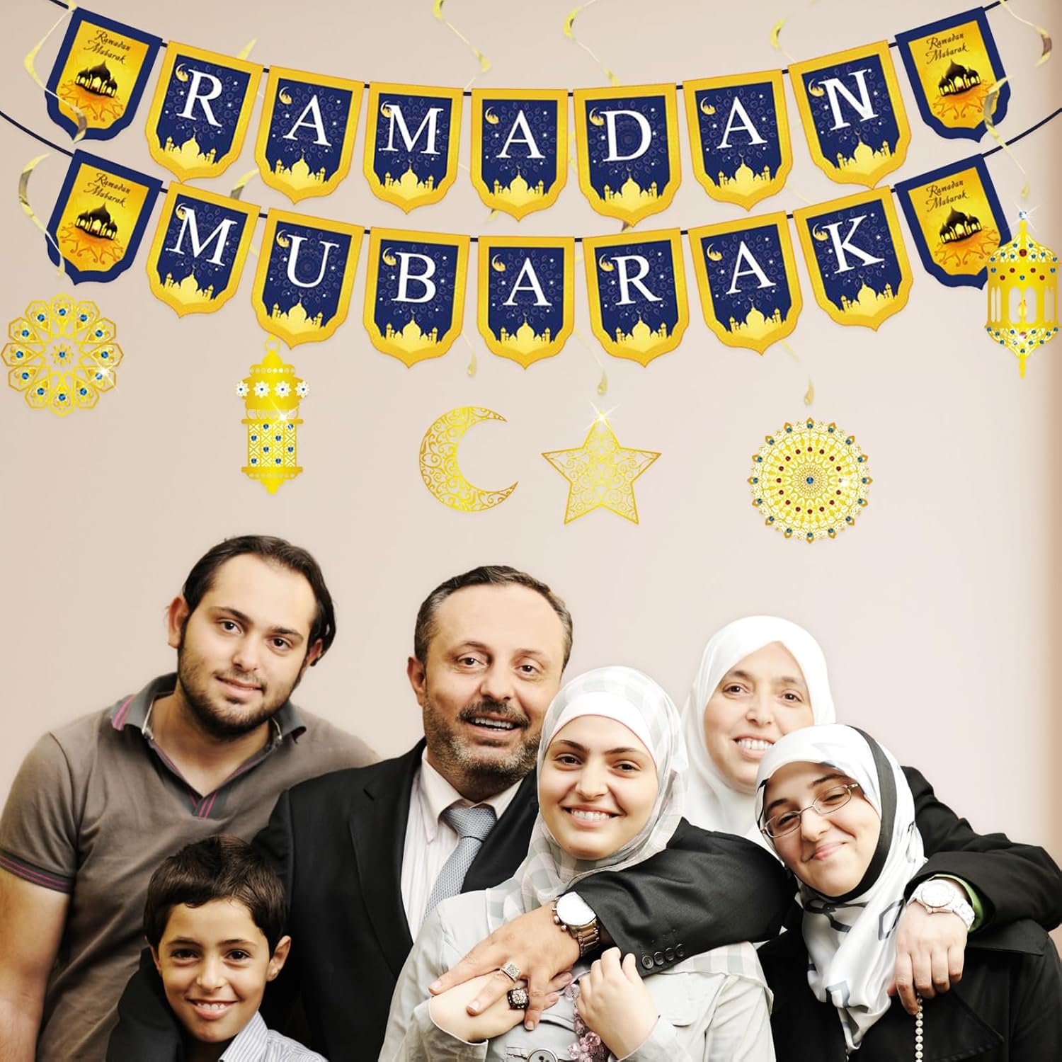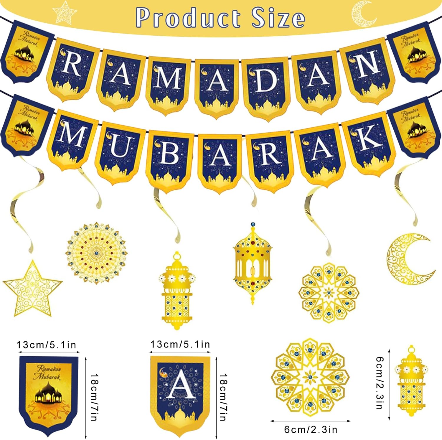 Contenuto della confezione: riceverai 1 striscione Ramadan Mubarak e una ghirlanda lunare a 6 stelle in stile Eid, decorazioni per striscioni Ramadan Mubarak per creare immediatamente un'atmosfera divertente alla tua festa. Materiale: decorazioni per feste Eid al-Fitr, realizzate in cartoncino di alta qualità, non tossiche, ecologiche e riciclabili, robuste e non facili da piegare o rompere. Facile da usare: ogni banner Eid deve essere unito, puoi appenderlo facilmente dopo averlo infilato, pieghevole per riporlo, soluzione perfetta ai problemi di archiviazione. Design unico: questo striscione per festa Ramadan realizzato in cartone blu dorato contiene luna, stella, lanterna, pieno di atmosfera festiva, appendi questo striscione Ramadan-Mubarak per questa sacra celebrazione annuale sopra il tuo camino, nella tua porta, al tuo tavolo da pranzo o nella finestra, il design unico aggiunge atmosfera alla tua festa. Ampiamente usato: decorazioni Ramadan Mubarak adatte per decorare l'Eid al-Fitr islamico musulmano e feste a tema, ad es. compleanno, baby shower, matrimonio e così via; per dare alla festa di Mubarak un'atmosfera festosa, rendi la tua festa più interessante.