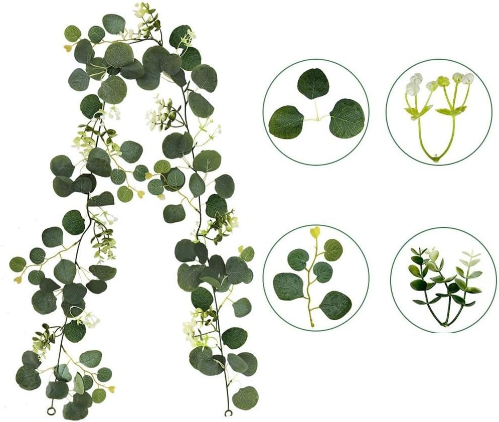 [SET DI DECORI VERSATILI] - Questa ghirlanda di eucalipto artificiale con edera artificiale (lunghezza: 175 cm o 180 cm) è per matrimoni, feste, casa, tavolo, parete e soffitto. Abbellisci il tuo ambiente in modo elegante. [VERDE REALISTICO] - Il design dettagliato e realistico garantisce un aspetto verde vibrante e autentico senza necessità di manutenzione. La ghirlanda rimane permanentemente fresca e attira l'attenzione. [FACILE DA CURA E FLESSIBILE] - La ghirlanda può essere facilmente attaccata: sopra i tavoli, alle pareti o appesa al soffitto. Perfetto per occasioni speciali e trasformazione rapida della stanza. [DUREVOLE E STABILE AI COLORI] – Realizzato in plastica di alta qualità, resistente alla luce e all'usura. La ghirlanda di edera artificiale rimane colorata e attraente per anni. [ALTERNATIVA SOSTENIBILE] - Goditi l'atmosfera delle piante verdi senza annaffiare, appassire o impatto ambientale: una soluzione intelligente per gli appassionati di decorazioni attenti all'ambiente.