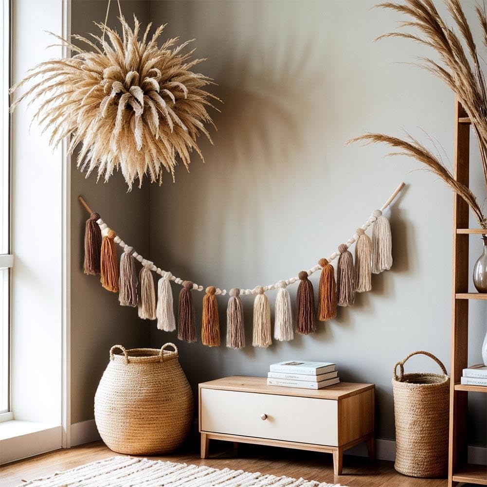 Materiali di alta qualità: gli striscioni sono realizzati con materiali di alta qualità, tra cui perline di legno naturale, che possono essere utilizzate a lungo. Design raffinato: queste delicate decorazioni pendenti sono disponibili in una varietà di colori, che possono progettare efficacemente la tua decorazione d'interni. Una volta installate, queste decorazioni sembreranno un arcobaleno rovesciato nella tua casa e aggiungeranno un paesaggio affascinante al tuo salotto. MULTIUSO: Le graziose decorazioni murali sono adatte per decorare corridoio, patio, balcone, portico, porta d'ingresso, giardino, cortile, prato, scaffali, addio al nubilato, matrimonio, festa di compleanno, inaugurazione della casa, festa di Natale e così via. Facile da appendere: lo striscione viene fornito con una corda che può essere facilmente appesa a qualsiasi parete per migliorare la decorazione della tua casa. Materiale affidabile: le decorazioni murali con nappe sono realizzate in materiale di alta qualità, le perline sono in legno, resistenti all'usura, antirughe, leggere, struttura naturale, morbide e comode da tenere, colori brillanti non facili da sbiadire, possono supportare un uso a lungo termine.