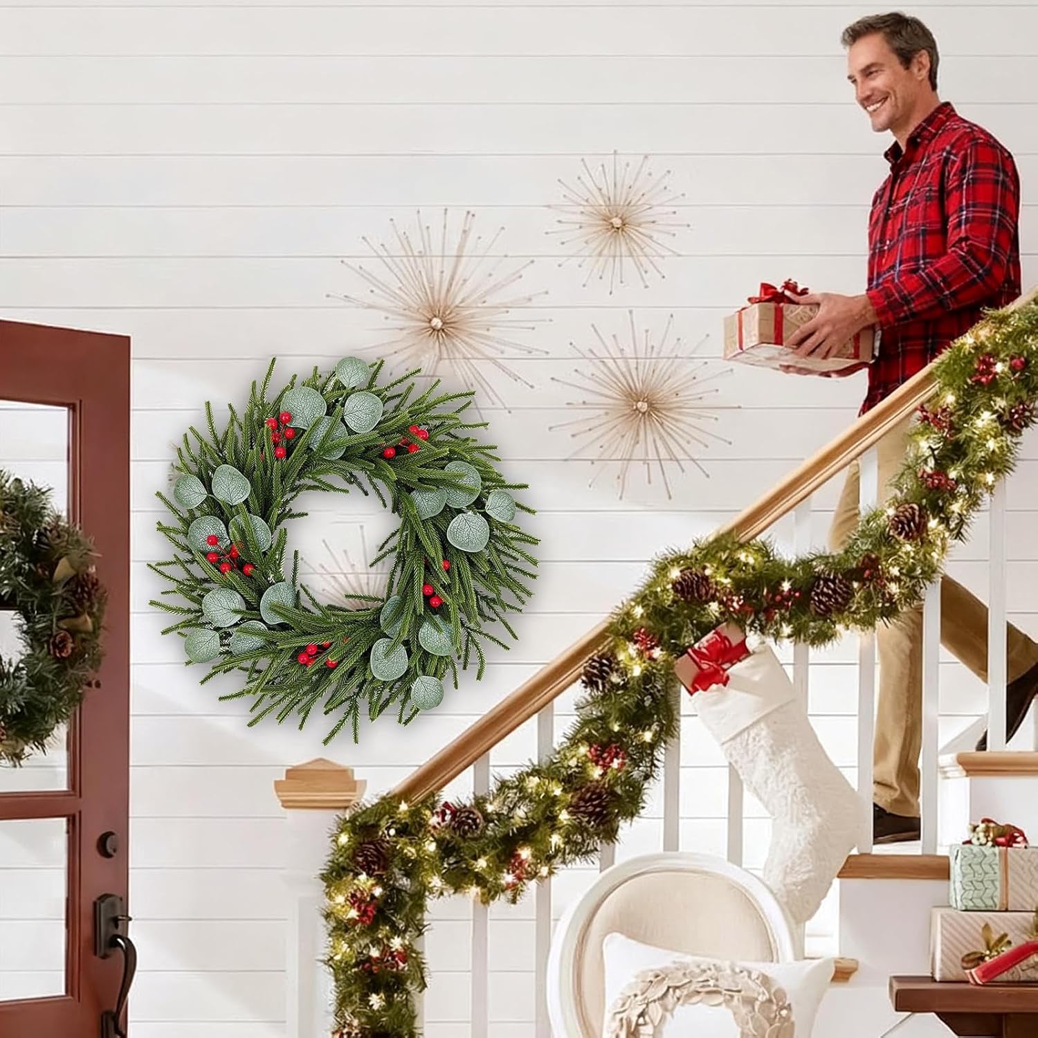 Calda atmosfera festosa: realizzata con bacche rosse brillanti e foglie di eucalipto, questa ghirlanda natalizia offre un'atmosfera festosa, offrendo un modo fantastico ed elegante per decorare salotti, portici o uffici per momenti memorabili durante le festività natalizie Installazione rapida: con queste ghirlande natalizie per la porta d'ingresso, non sono necessarie complesse fasi di assemblaggio, consentendoti di aggiungere rapidamente un tocco di fascino festivo all'esterno della tua casa dedicando più alla celebrazione di momenti speciali con la amata Usi multipli: questa ghirlanda natalizia per porta funge da accento ideale per molteplici aree come il davanzale della finestra, il , la porta d'ingresso o il soggiorno, offrendo opzioni di posizionamento versatili che portano calore e fascino stagionali a qualsiasi ambiente interno durante le vacanze Pregevole fattura: la ghirlanda natalizia per esterni presenta una lavorazione meticolosa che mantiene la sua forma naturale e garantisce un aspetto resistente sbiadimento, rendendola ideale per migliorare l'arredamento festivo all'aperto resistendo a varie condizioni atmosferiche con vivacità e fascino duraturi nel giardino o patio Materiale robusto: questa ghirlanda natalizia per interni presenta una struttura robusta con materiali accuratamente selezionati per garantire una lunga durata e prestazioni affidabili, garantendo che ai cambiamenti stagionali e all'uso ripetuto in vari ambienti festivi